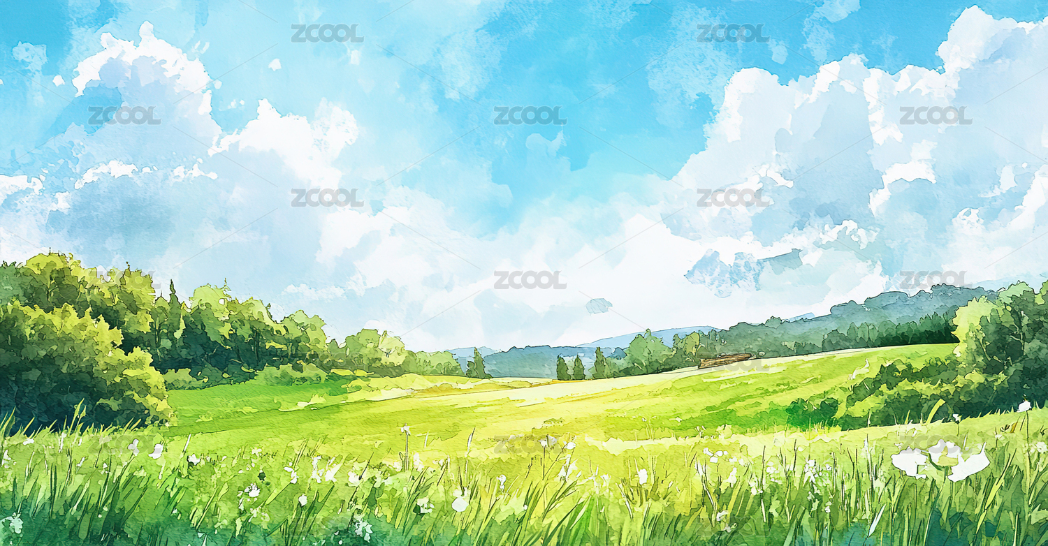 清新绿色田野风景插画