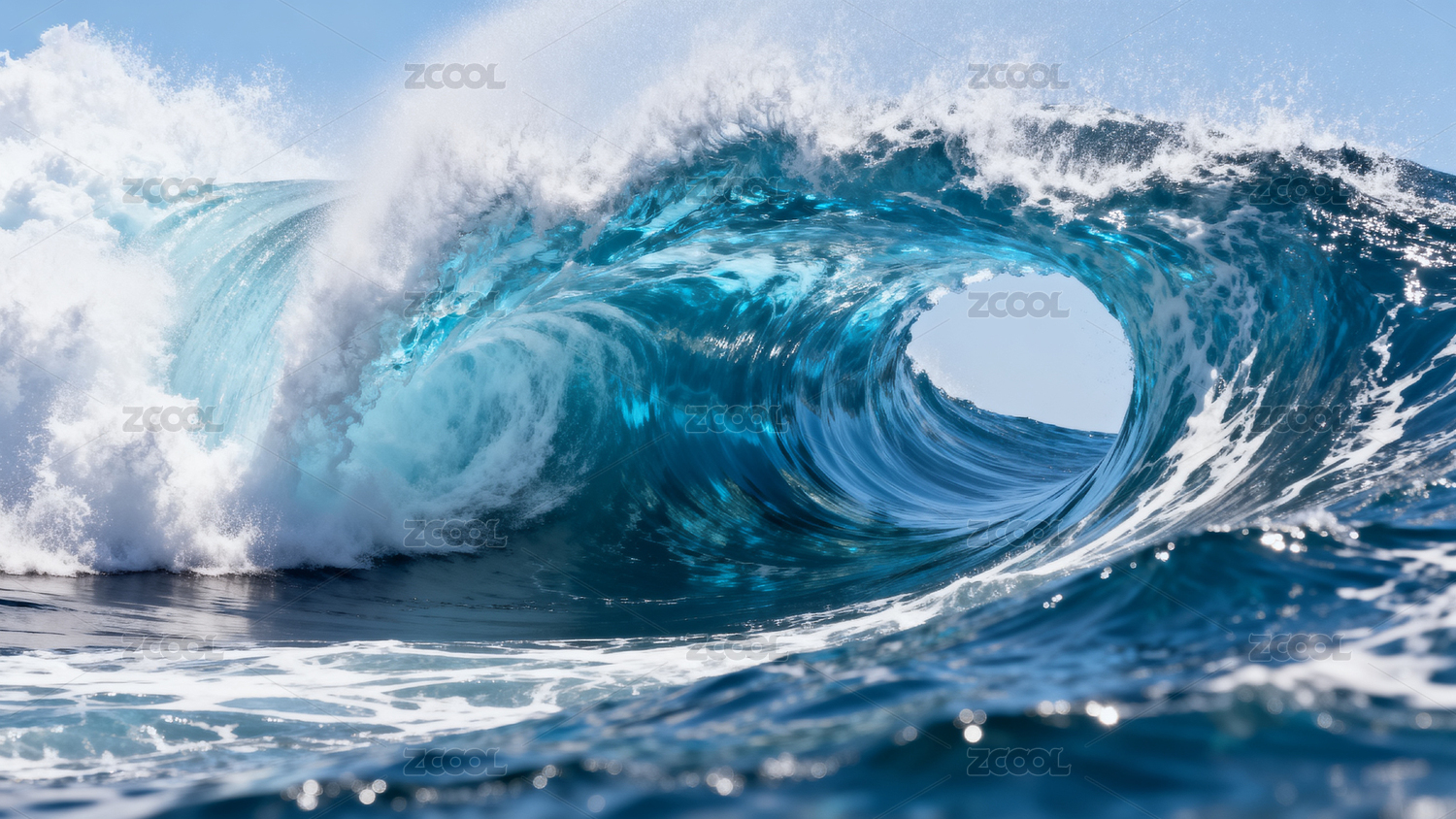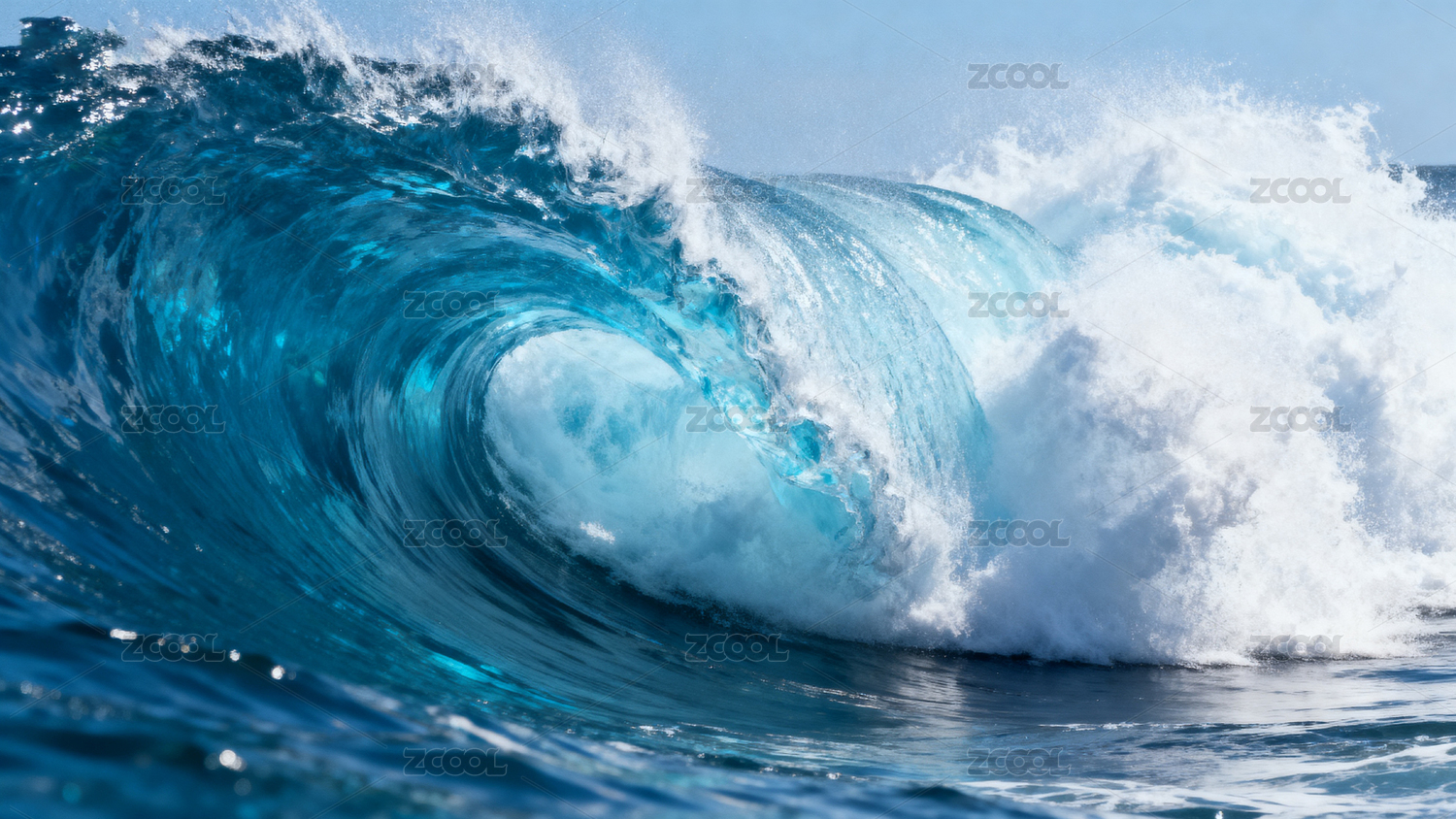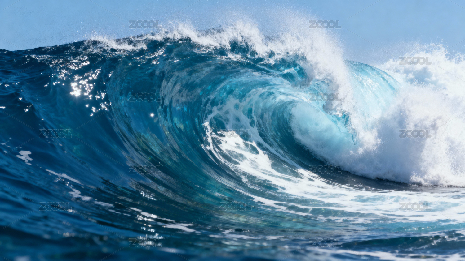 蔚蓝海浪卷曲拍打画面