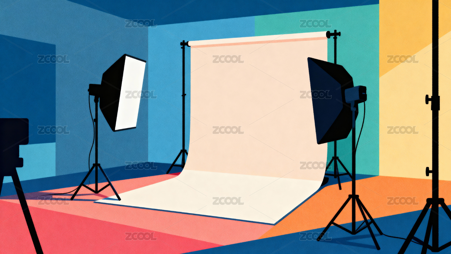 多彩摄影棚布景与灯光设备