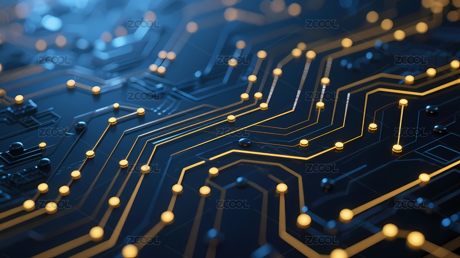 电子电路板特写电脑芯片,蓝色赛博电路未来