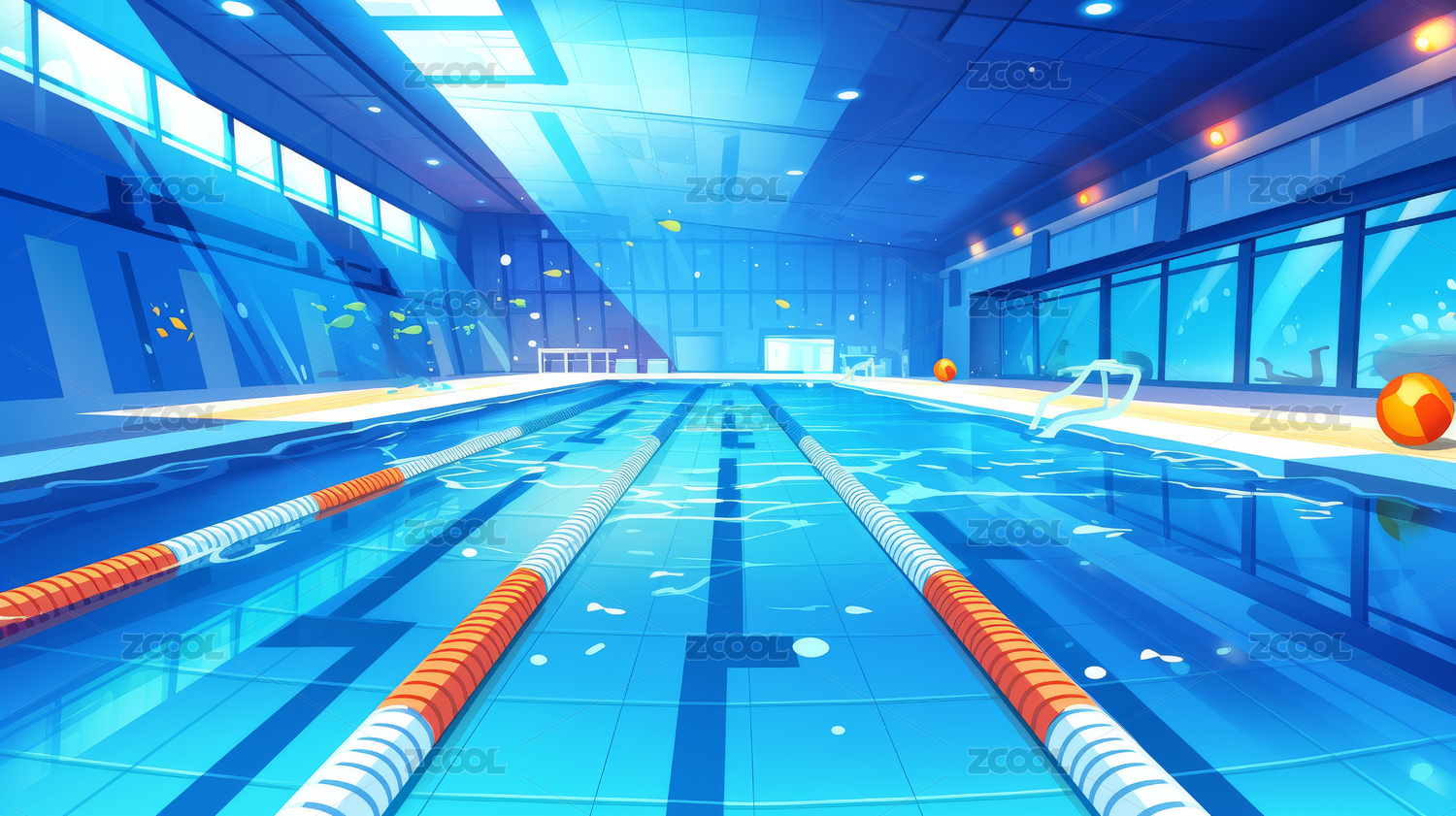 游泳池,宁静,水面,灯光,反射,蓝色,夜晚,放松,休闲,运动