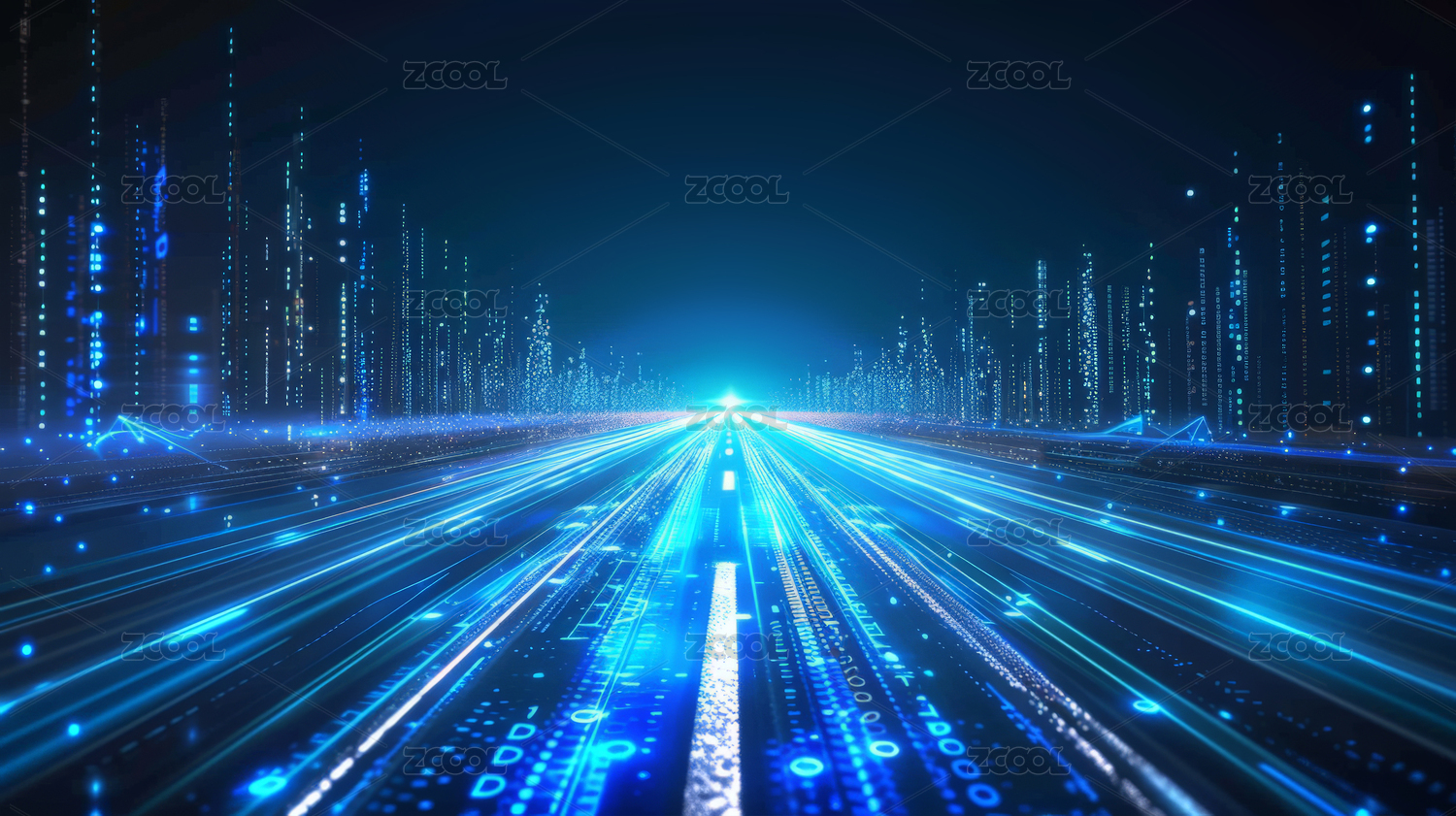 科技感蓝色数据流隧道矩阵空间背景壁纸