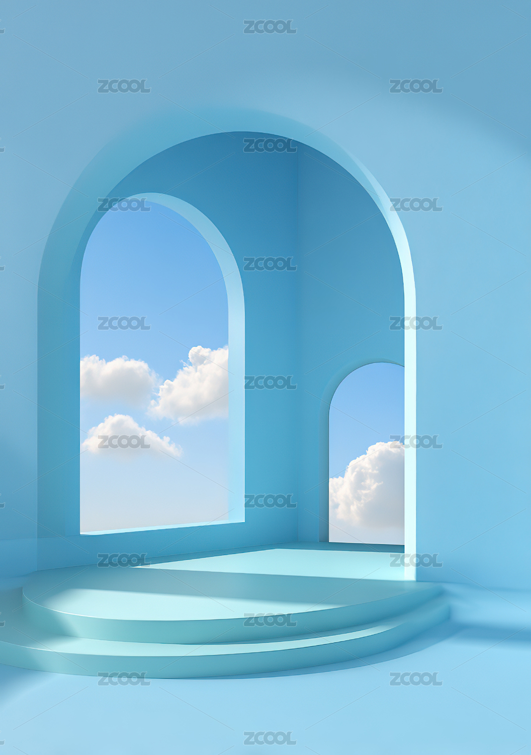 拱门,蓝色,几何,简约,现代,抽象,光影,空间,设计,艺术