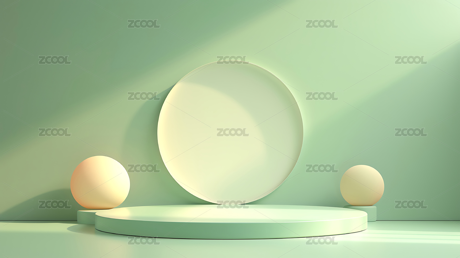 简约绿色圆台与光影效果