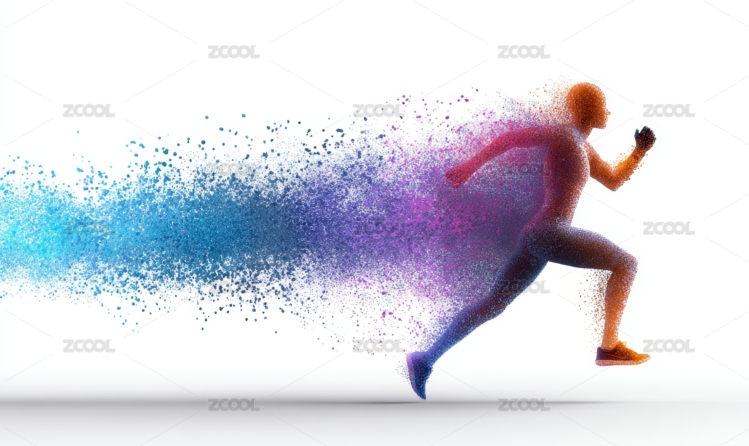 现代,色彩,粒子,人形,动态,奔跑,鲜艳,轨迹,抽象,艺术