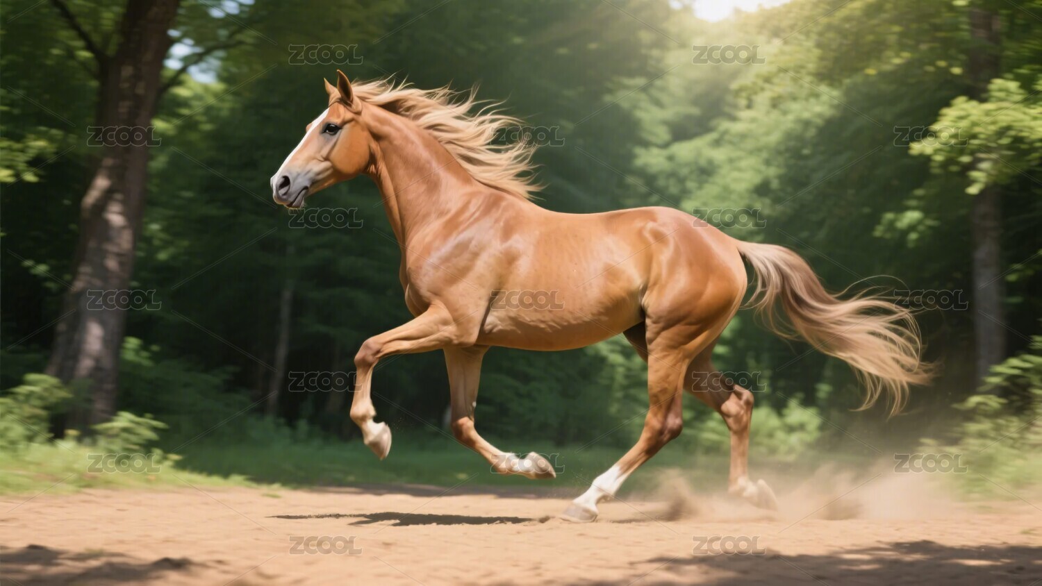 林间奔跑的棕色骏马