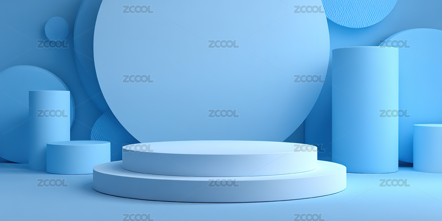 蓝色几何造型展示台