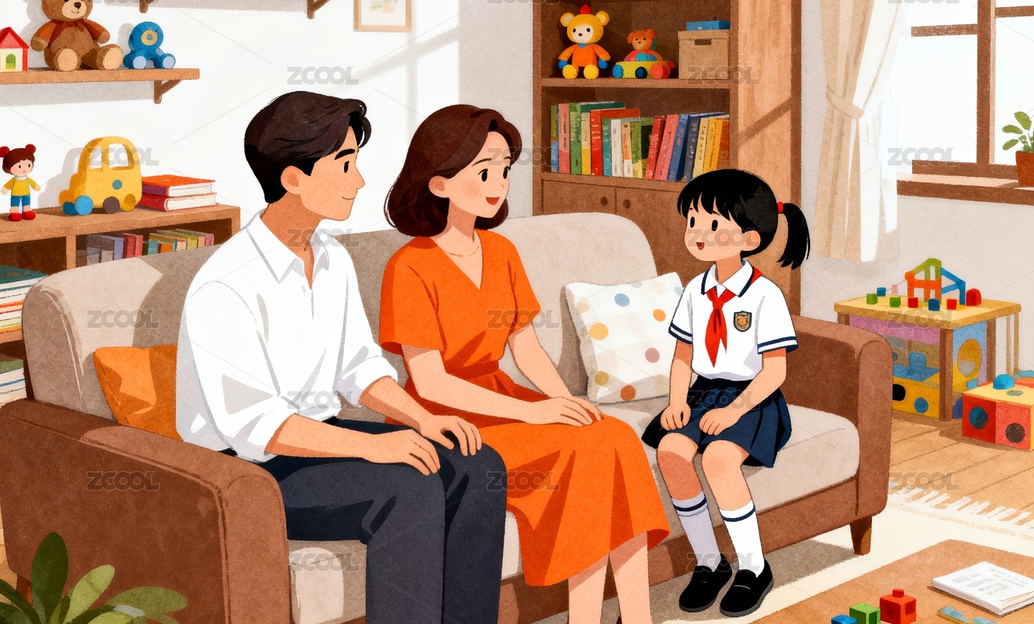 亲子家庭温馨居家交流场景