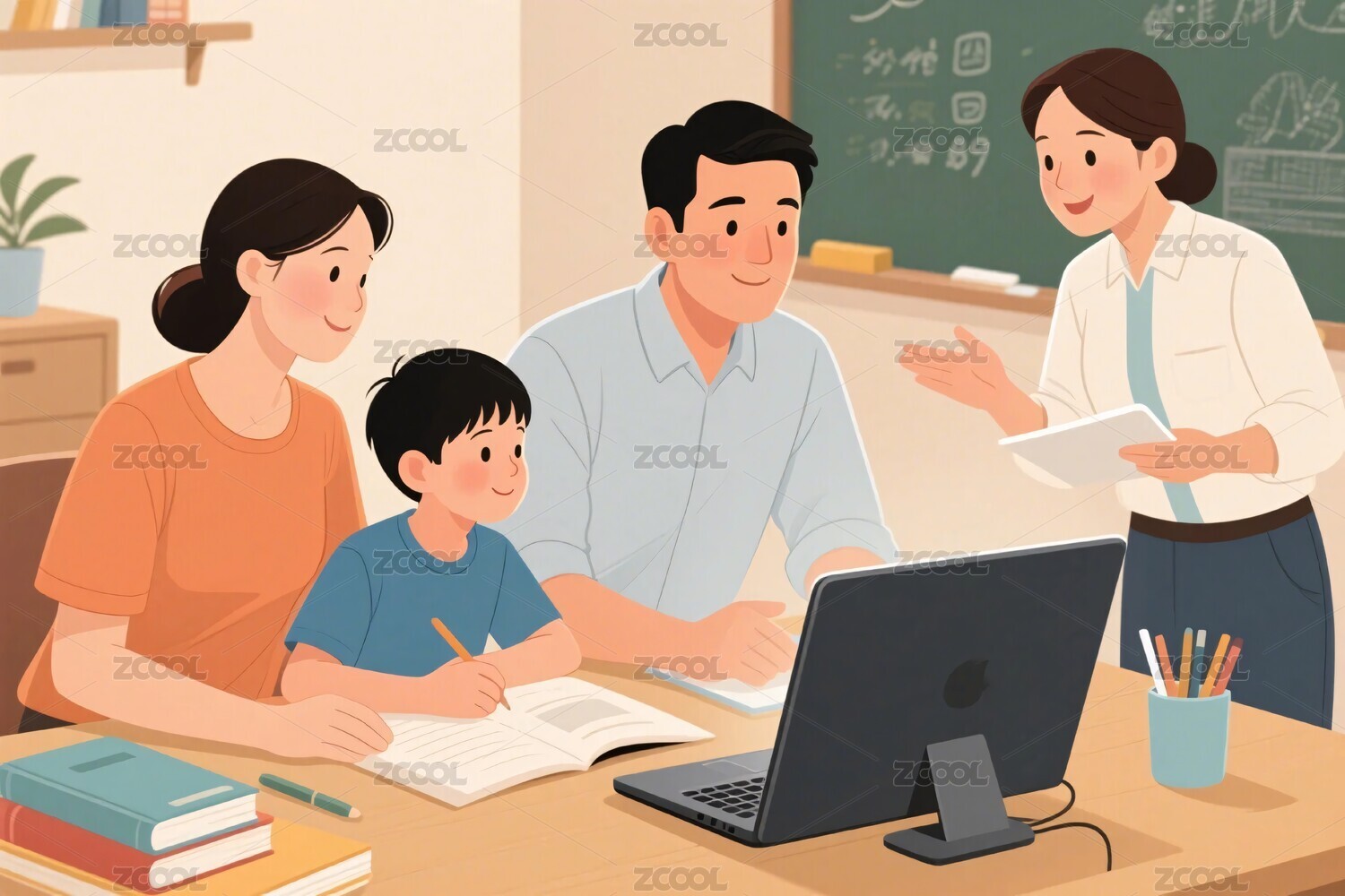 家庭课堂交流插画