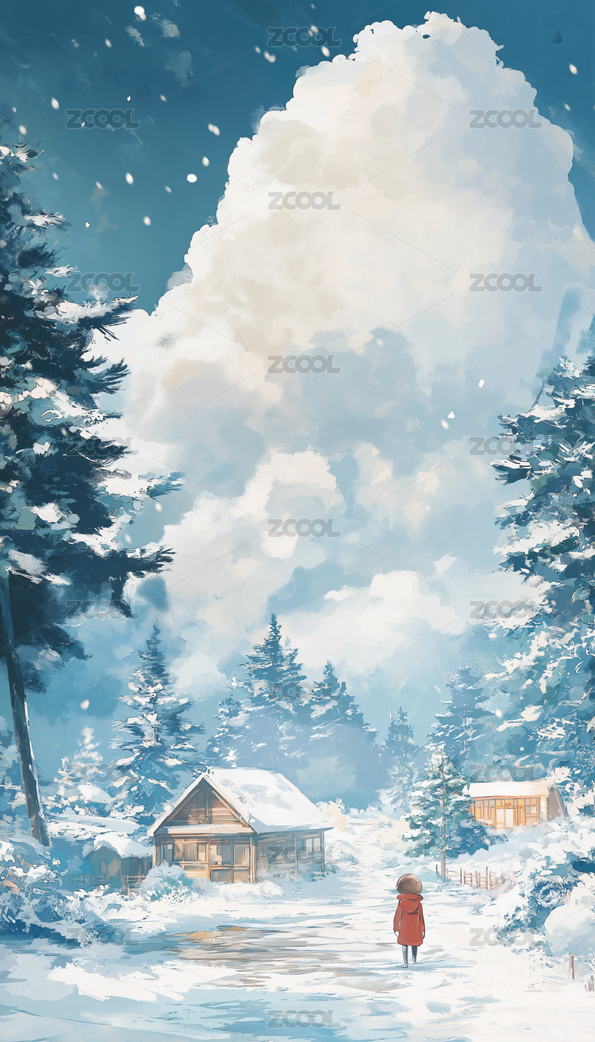 小木屋,雪景,房屋,森林,冬季,雪地,树木,松树,木屋,插画