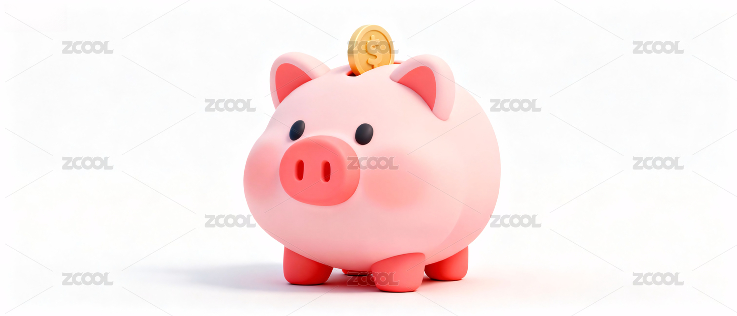 3d风格粉色小猪存钱储蓄罐和1个金币
