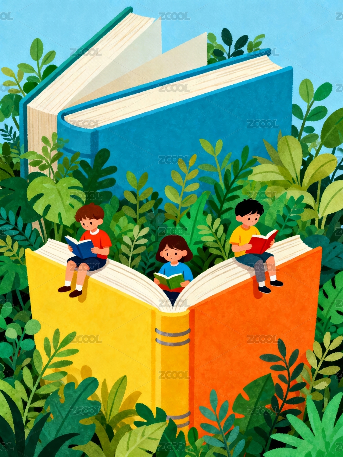 儿童阅读卡通自然学习场景