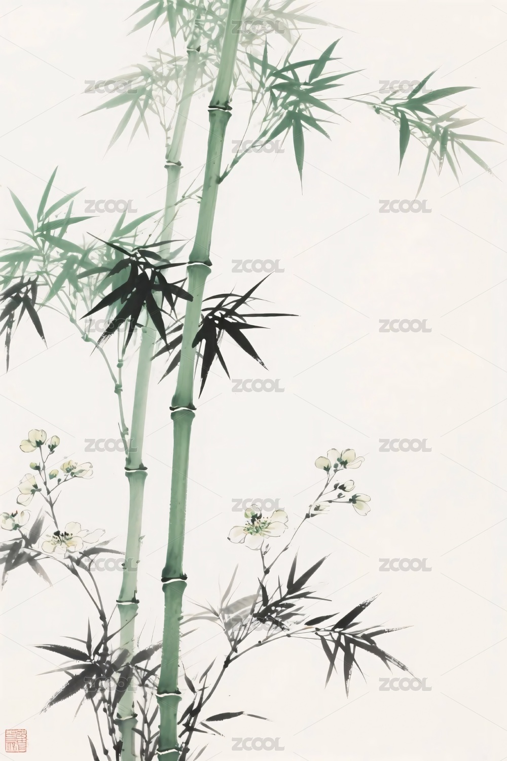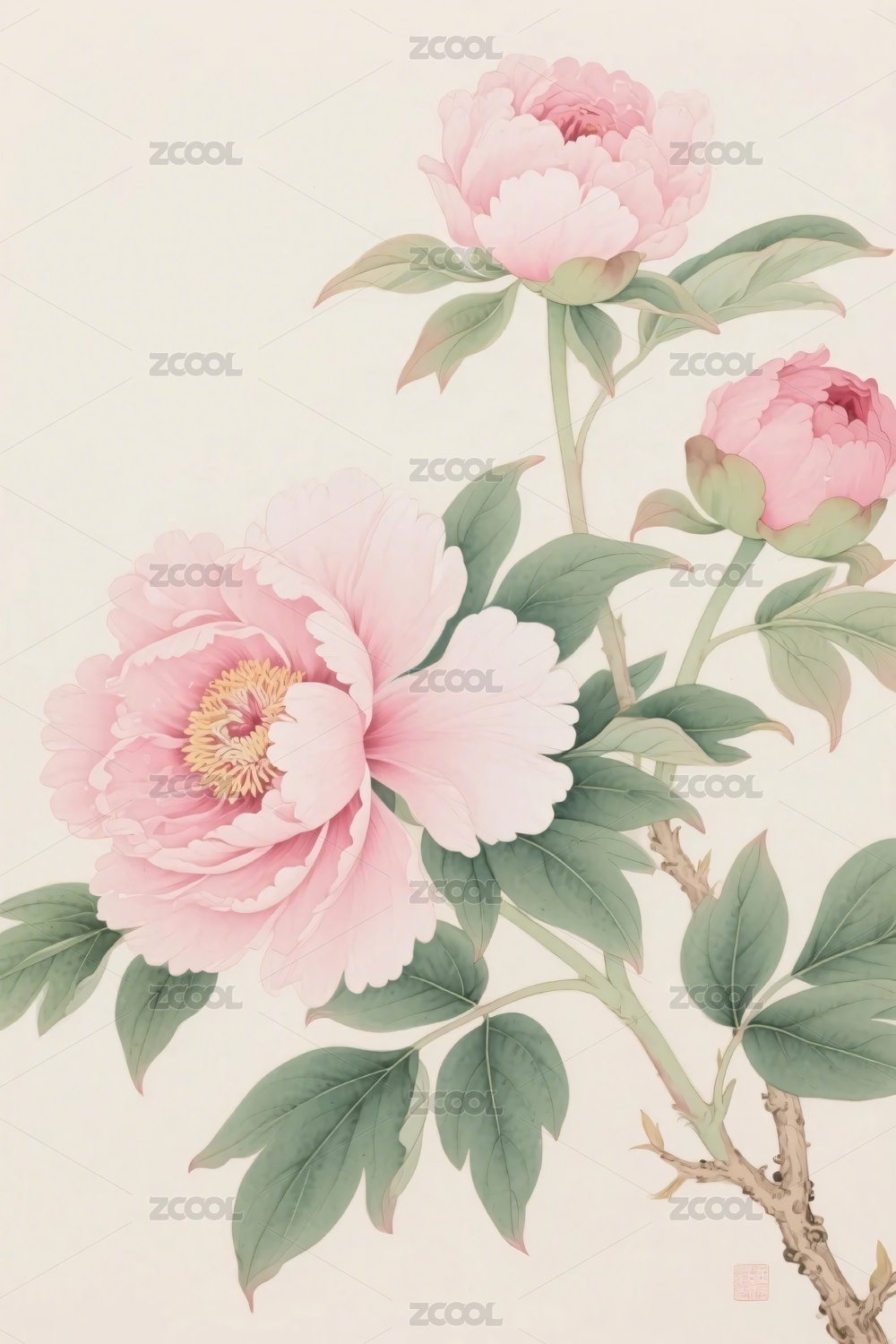 牡丹,竹子,花卉,植物,中式,古风,插画,矢量,图案,背景