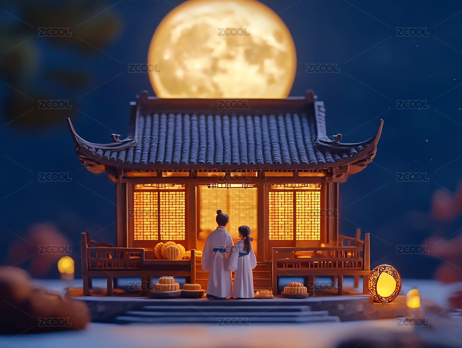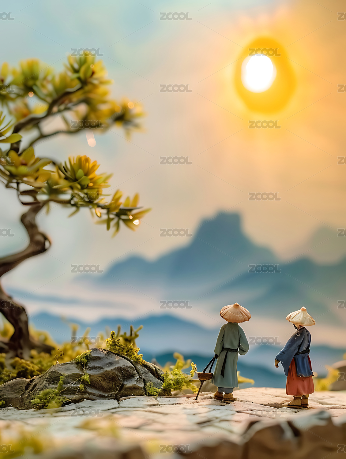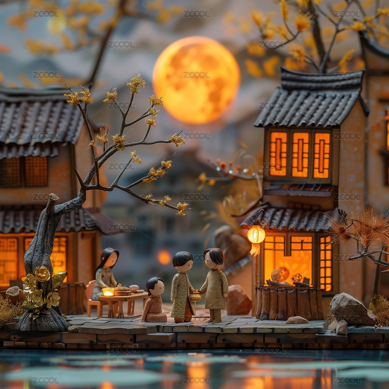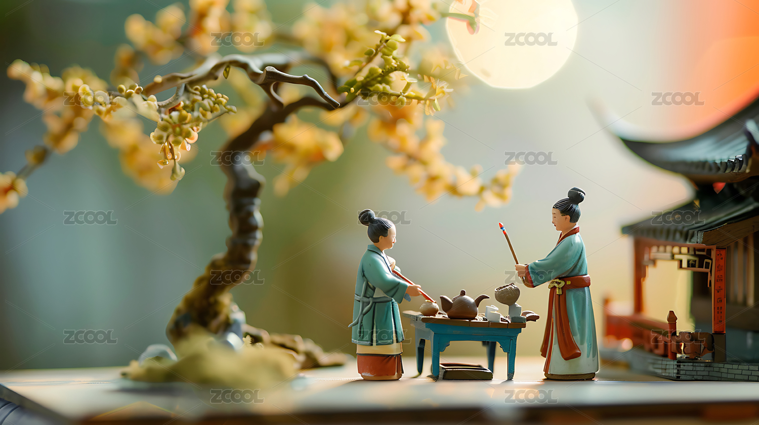 人物,场景,建筑,水面,竹子,颜色,装饰,池塘,自然,模型