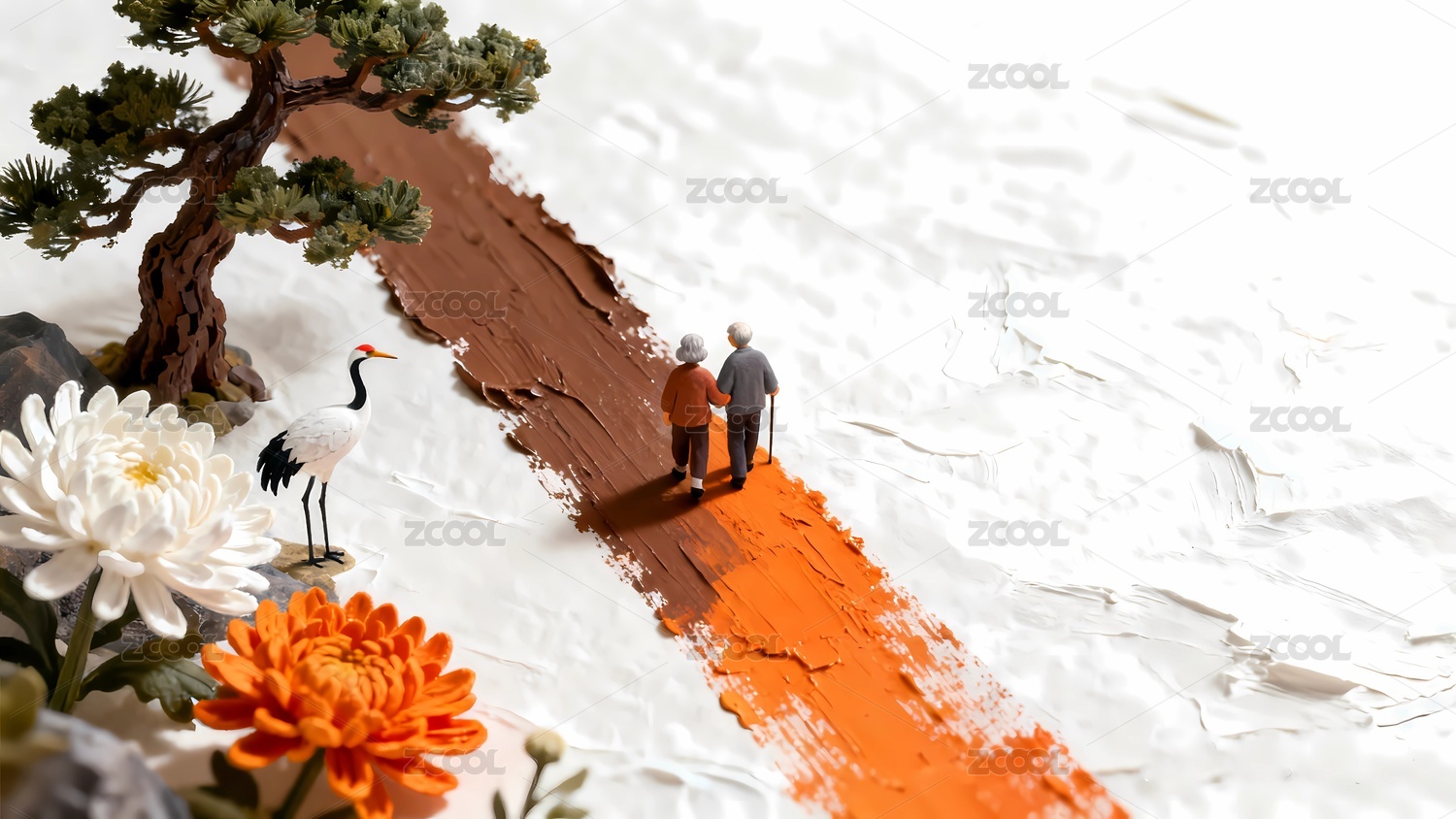 重阳节老人登高赏菊微型景观