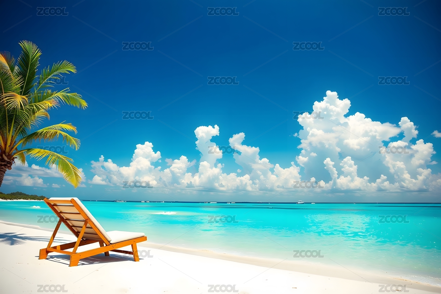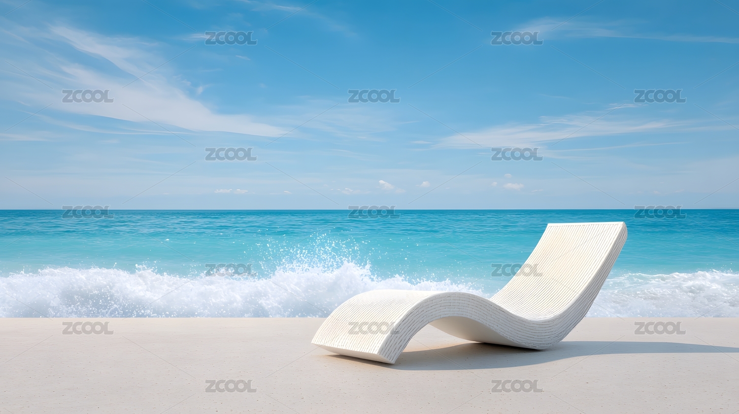 海滩,躺椅,空椅,海洋,蓝天,白云,休闲,放松,度假,宁静