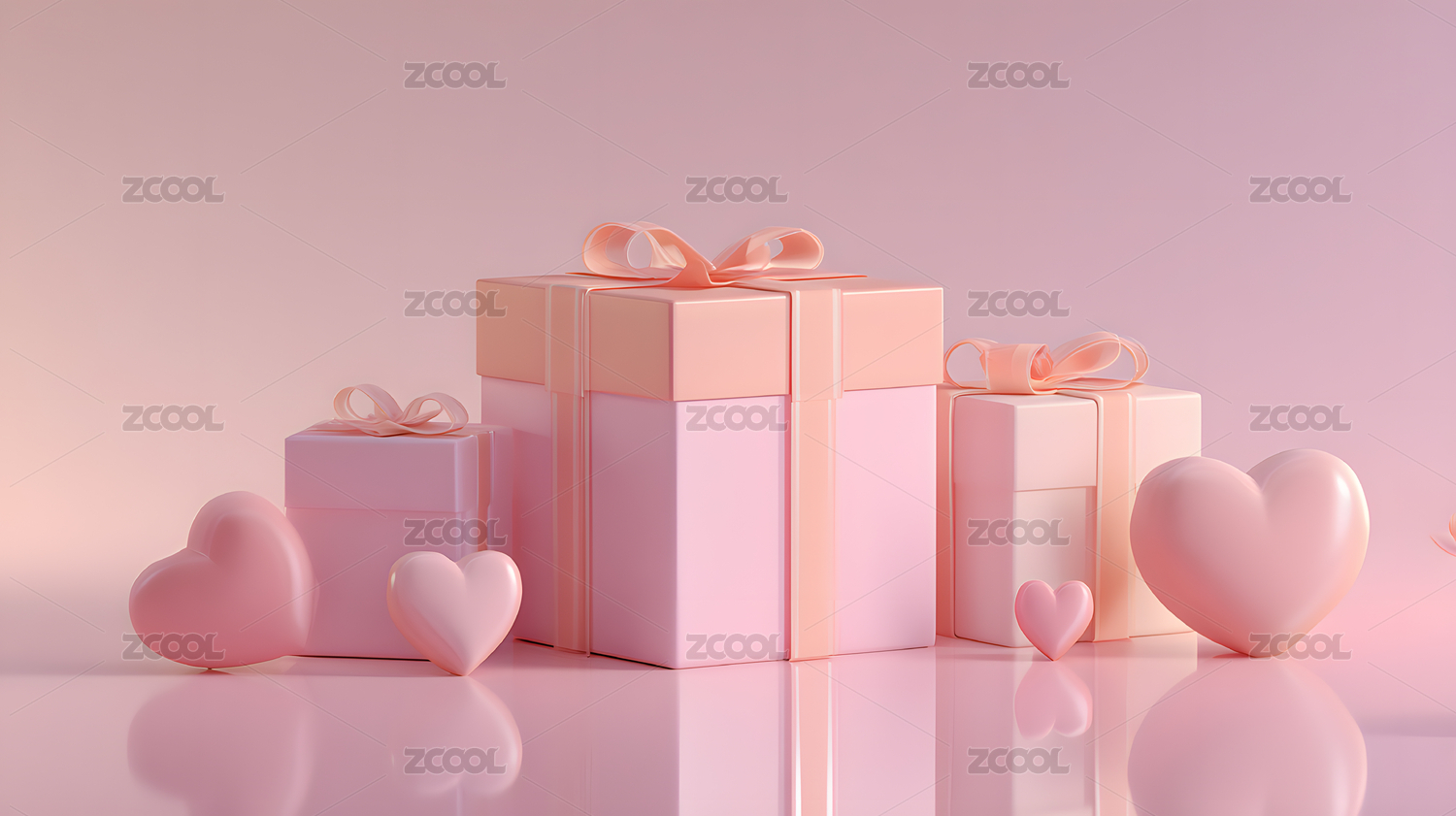 心形,粉色,柔和,渐变,立体,背景,浪漫,梦幻,光晕,装饰