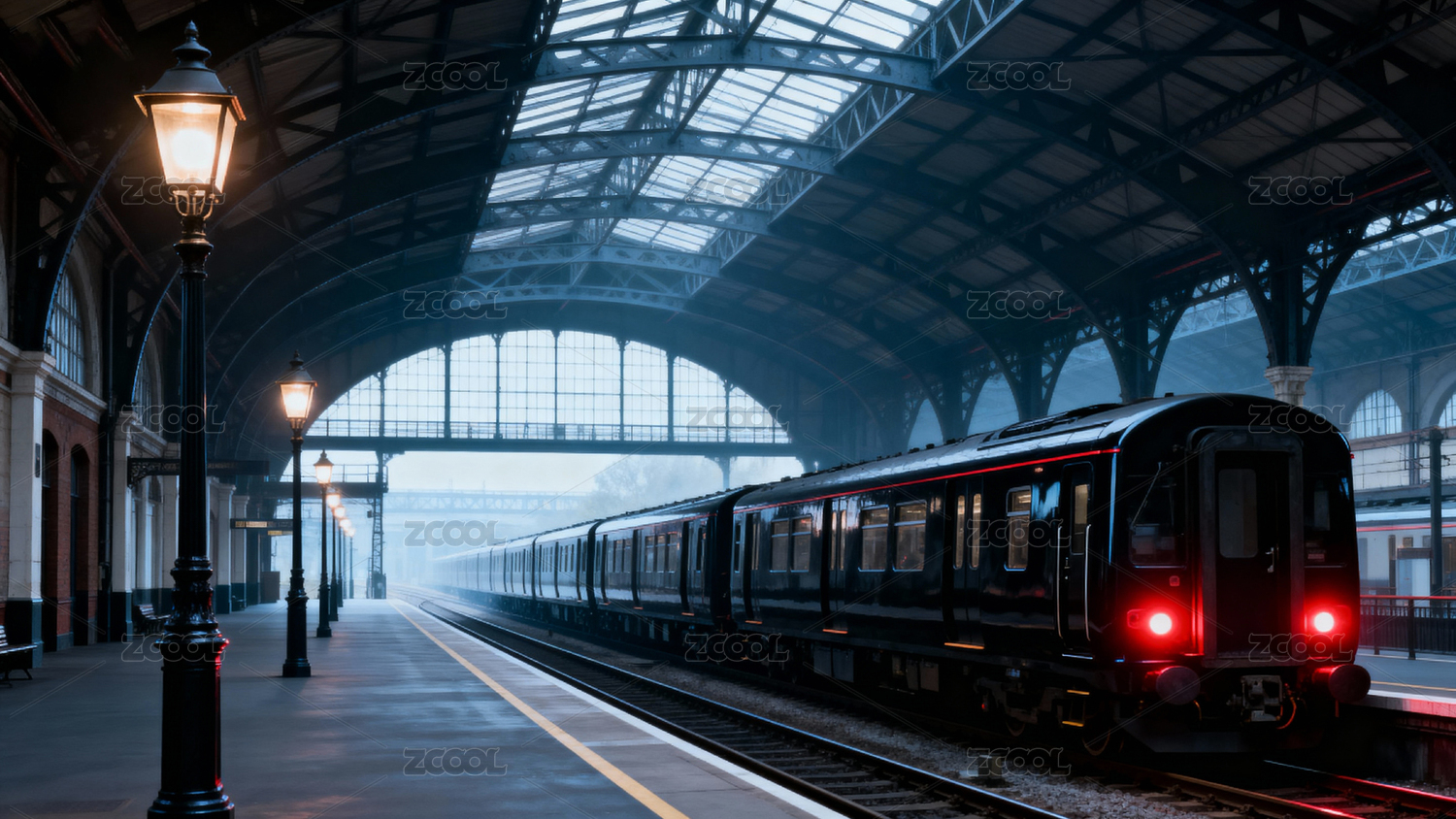 蓝色,红色,火车,列车,站台,轨道,车厢,照明,铁轨,建筑