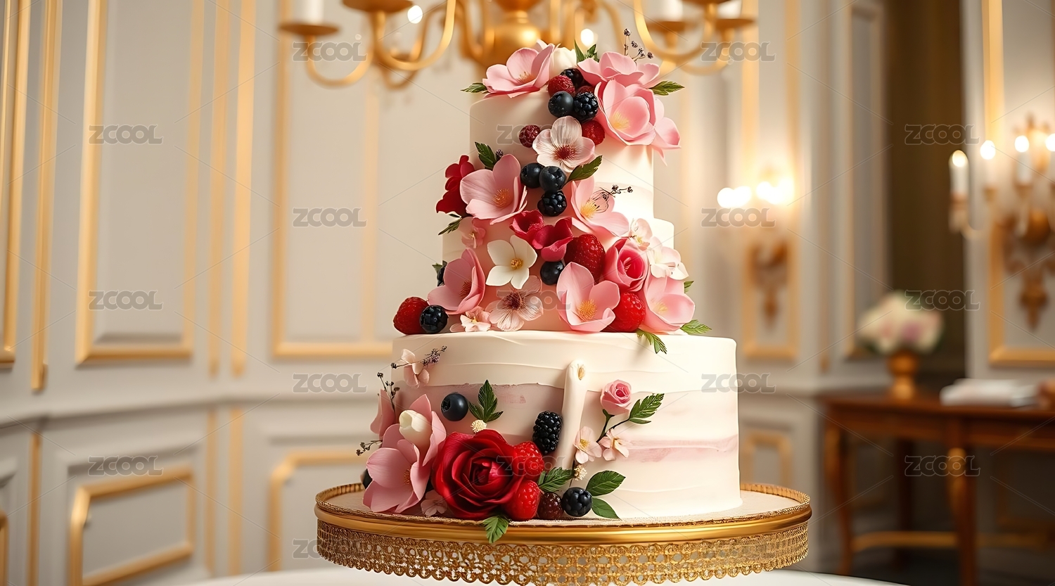 豪华婚礼蛋糕精致花卉装饰浪漫氛围