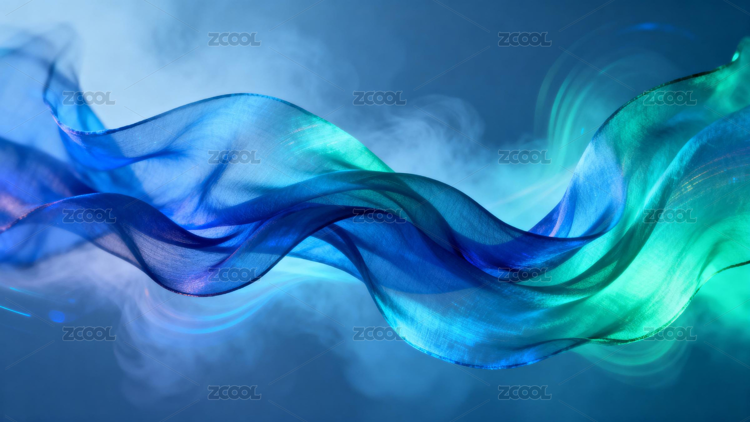 梦幻蓝绿渐变丝缎装饰场景