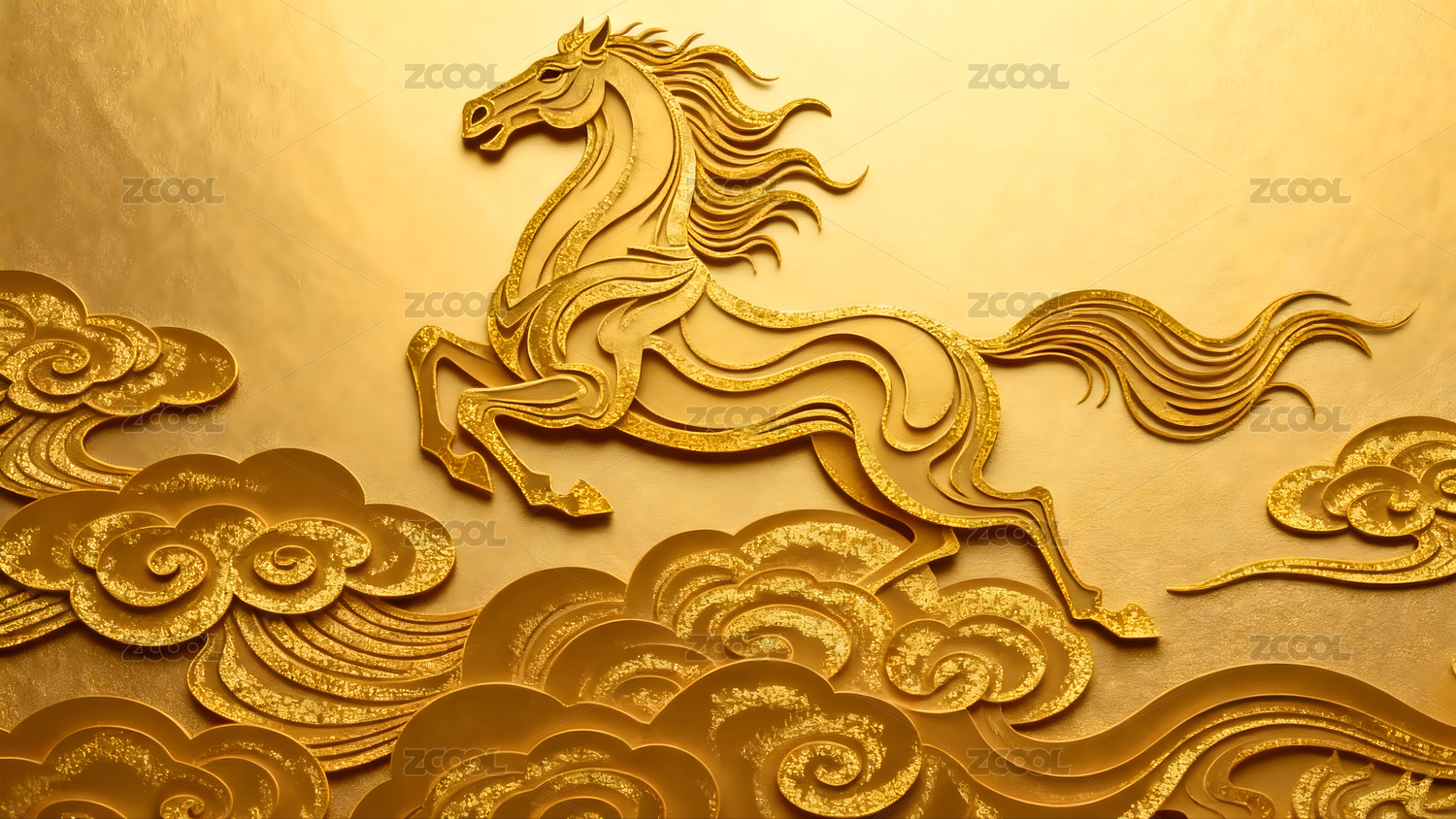 中国传统生肖马敦煌纹样红金配色立体浮雕