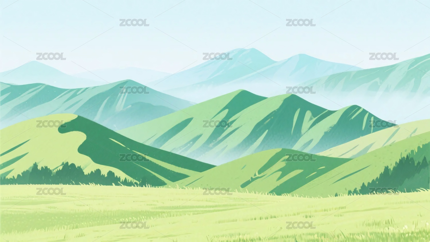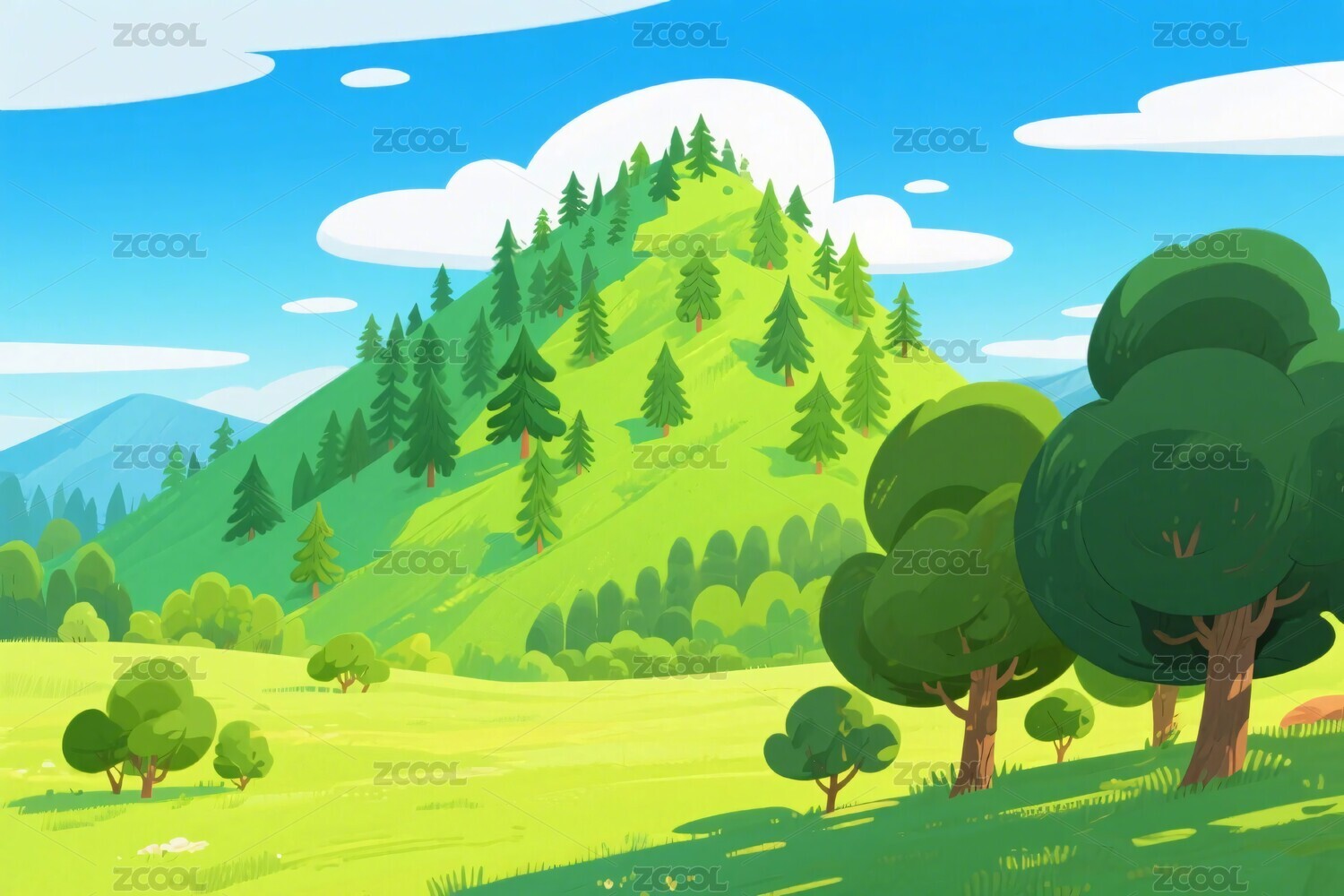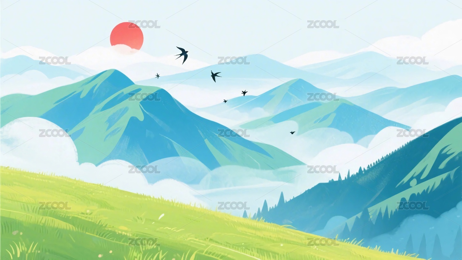 山林,飞机,草地,树木,山峰,插画,自然,风景,矢量,蓝天
