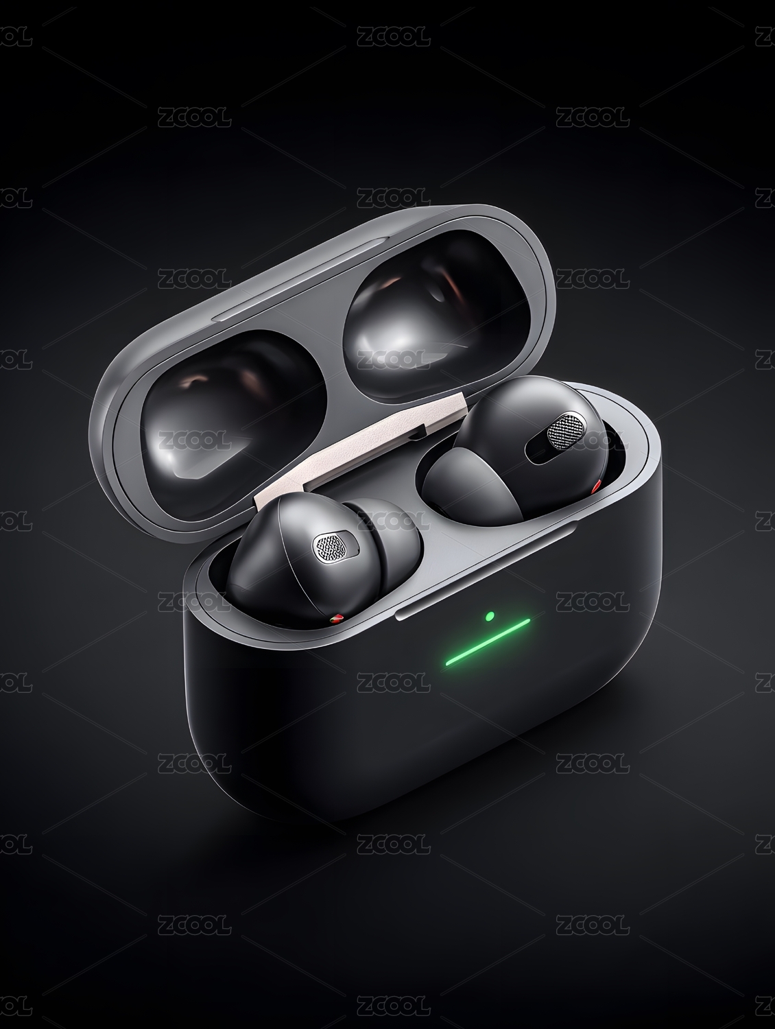 无线耳机3D渲染,听音乐娱乐的概念插图