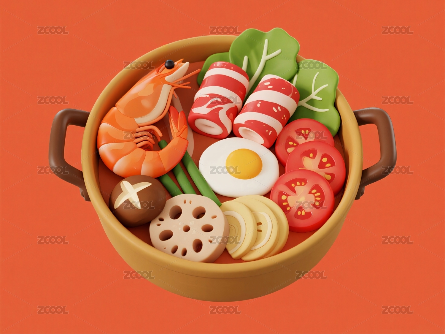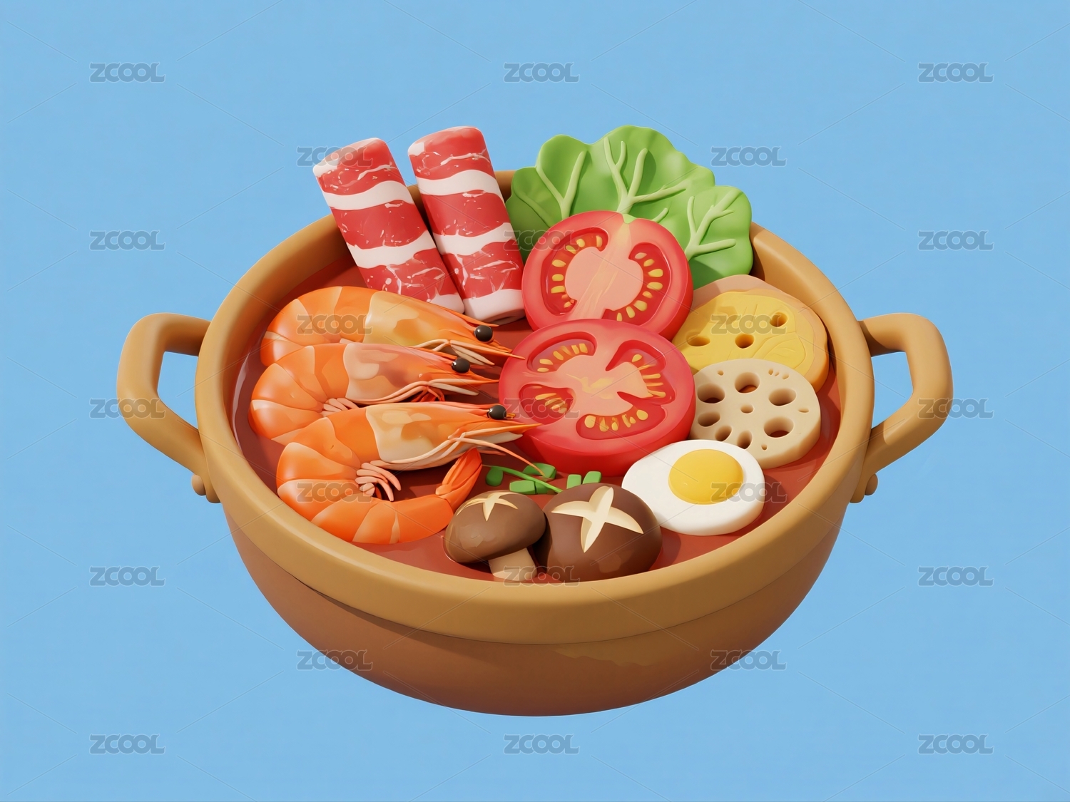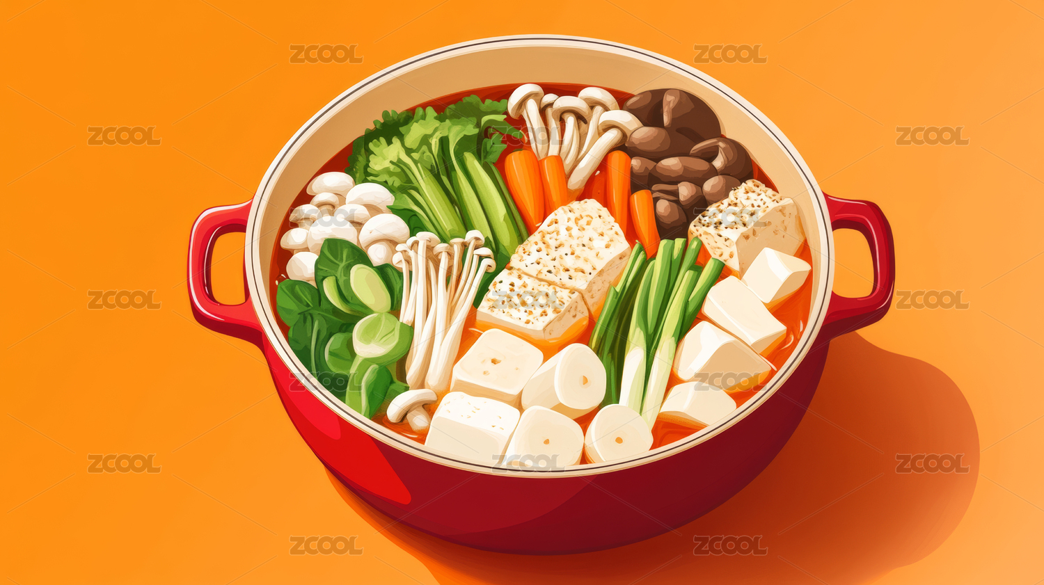 一锅丰盛食材搭配卡通风格