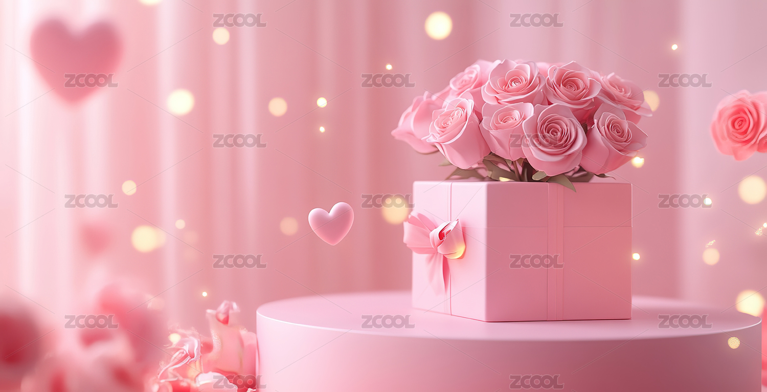 粉色礼物盒与玫瑰花浪漫温馨