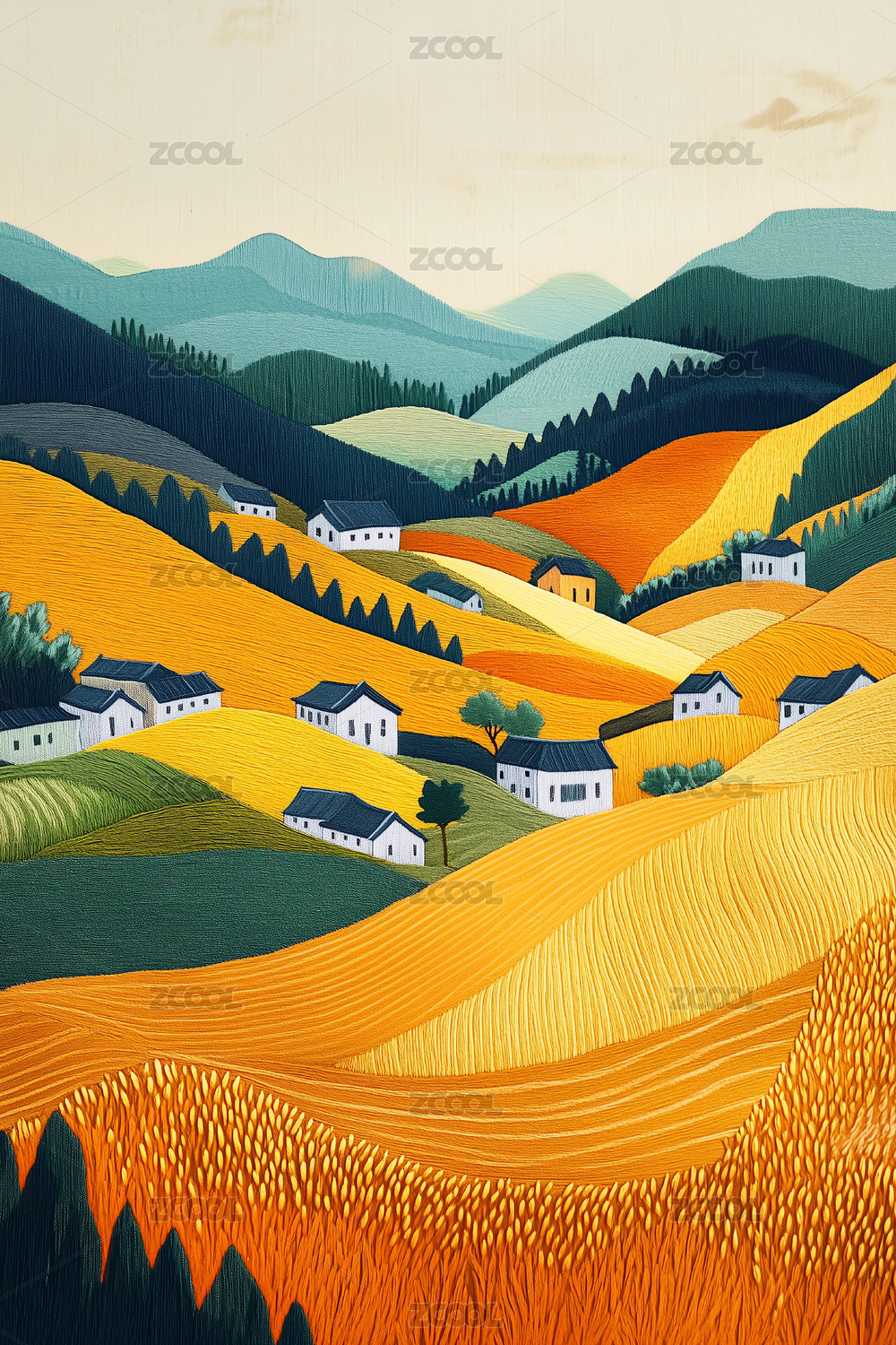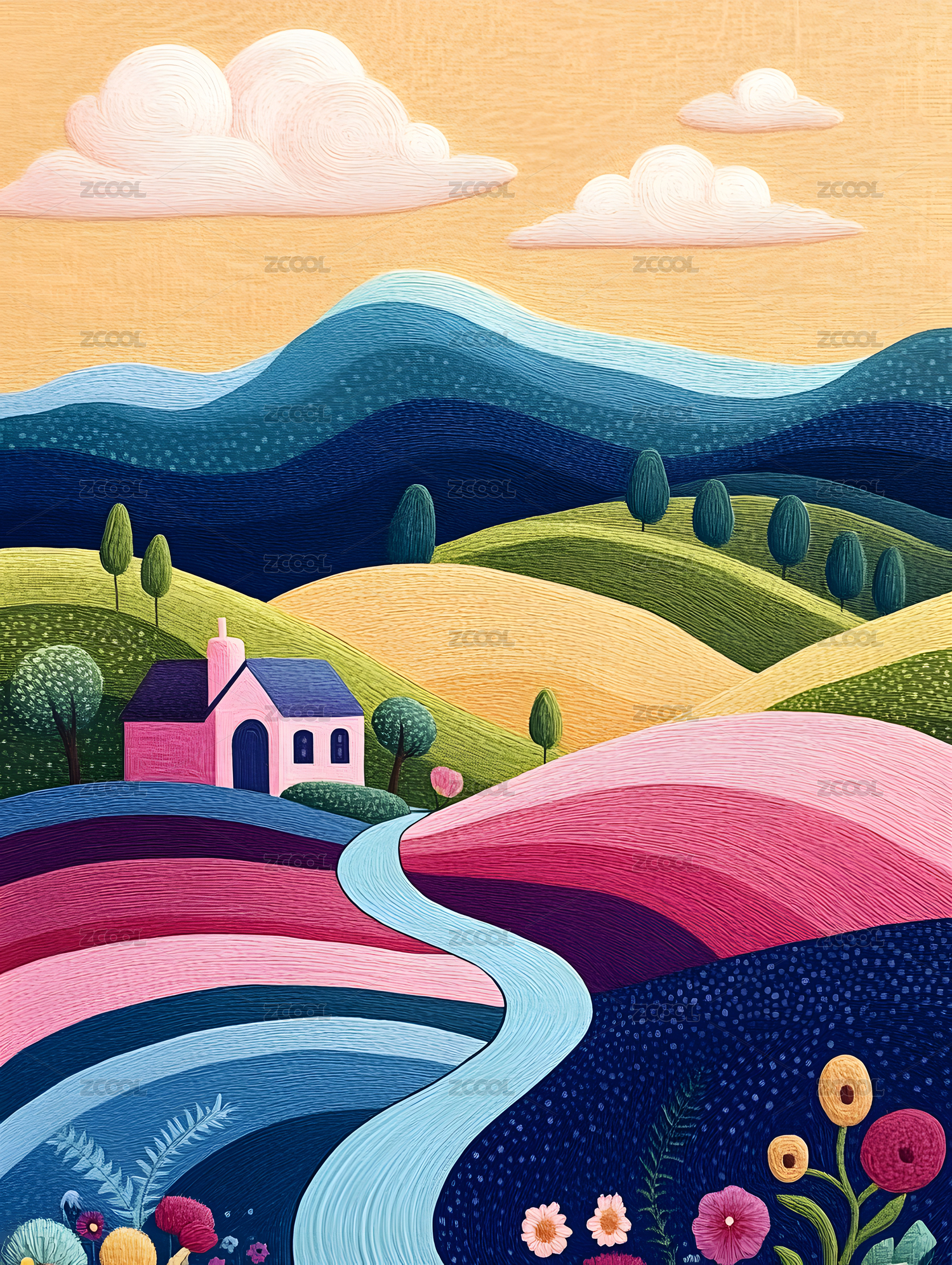 田园风光3D立体插画