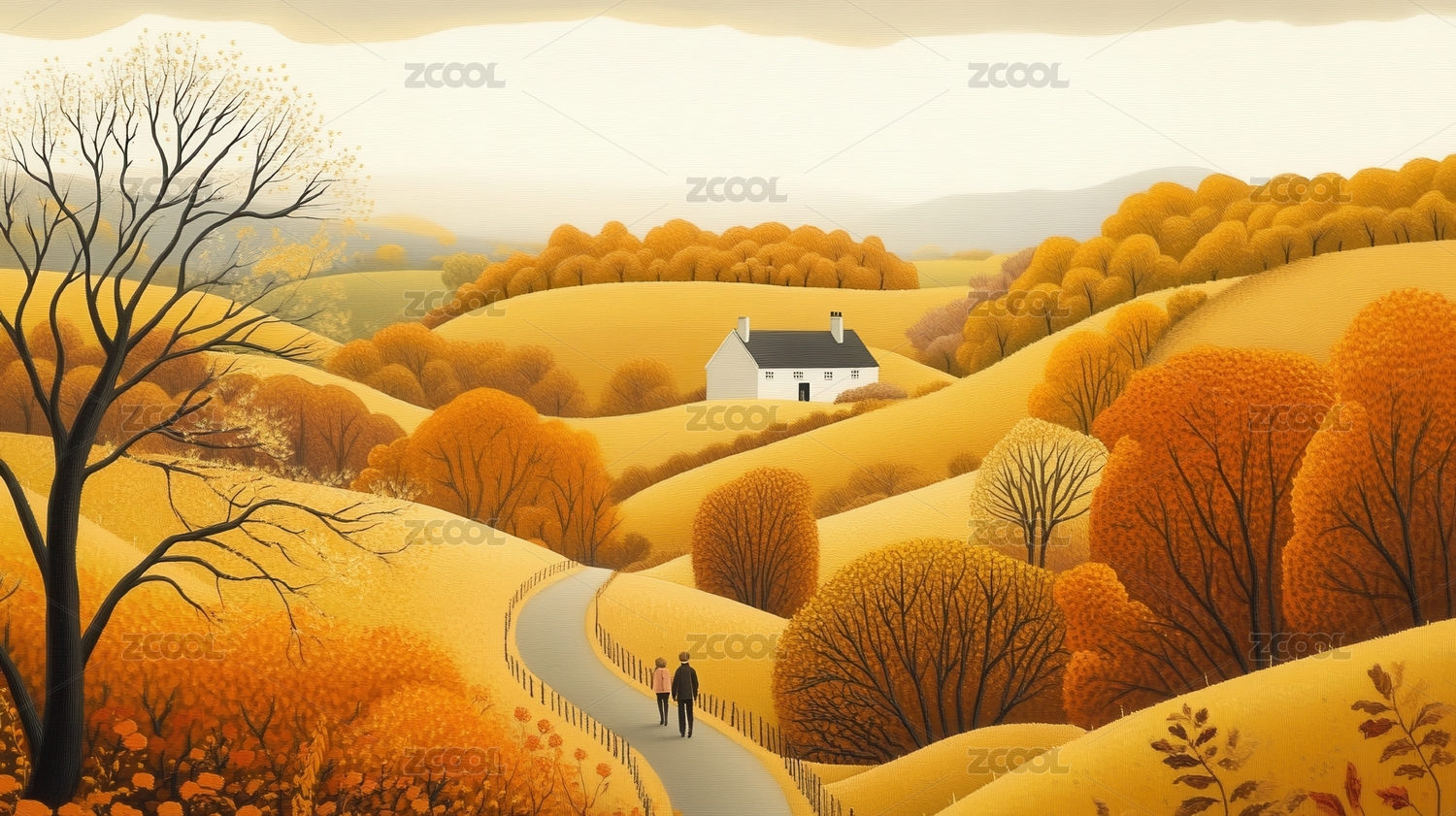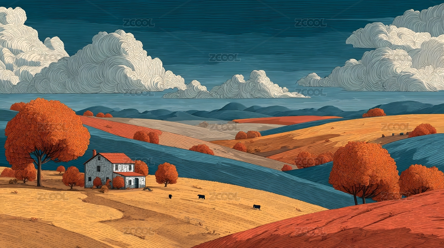 秋日田野小屋风景