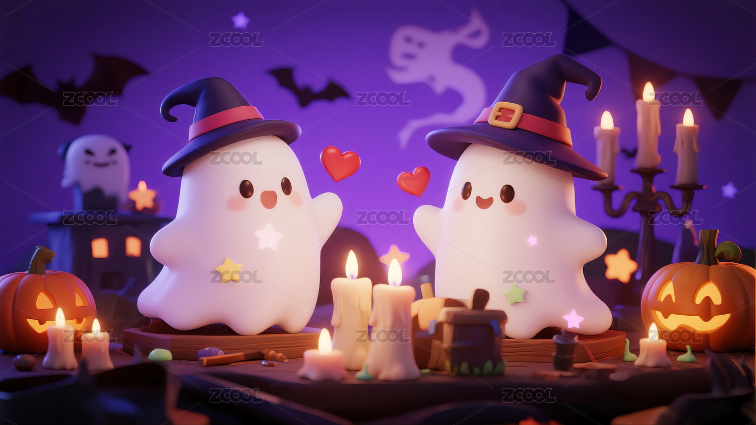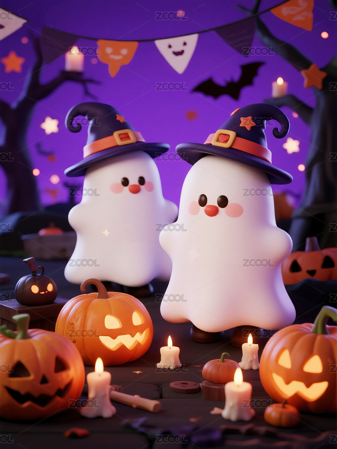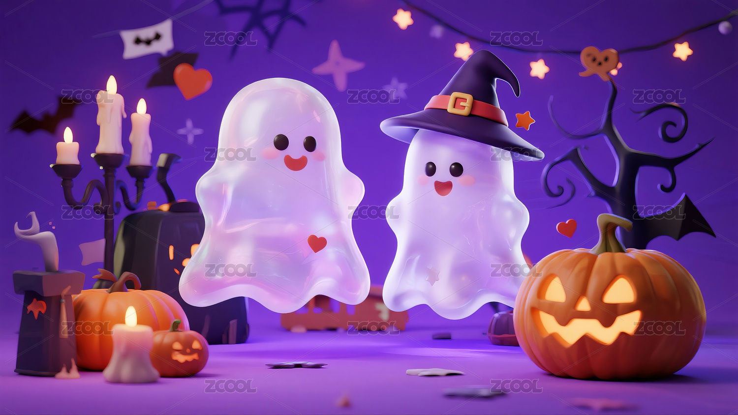 万圣节,幽灵,巫师帽,南瓜,小鬼,阿飘,南瓜灯,背景