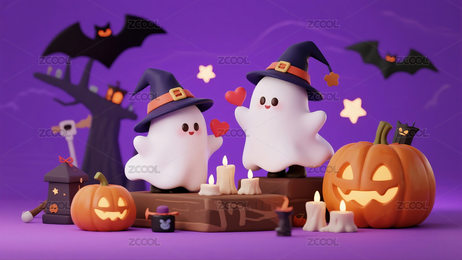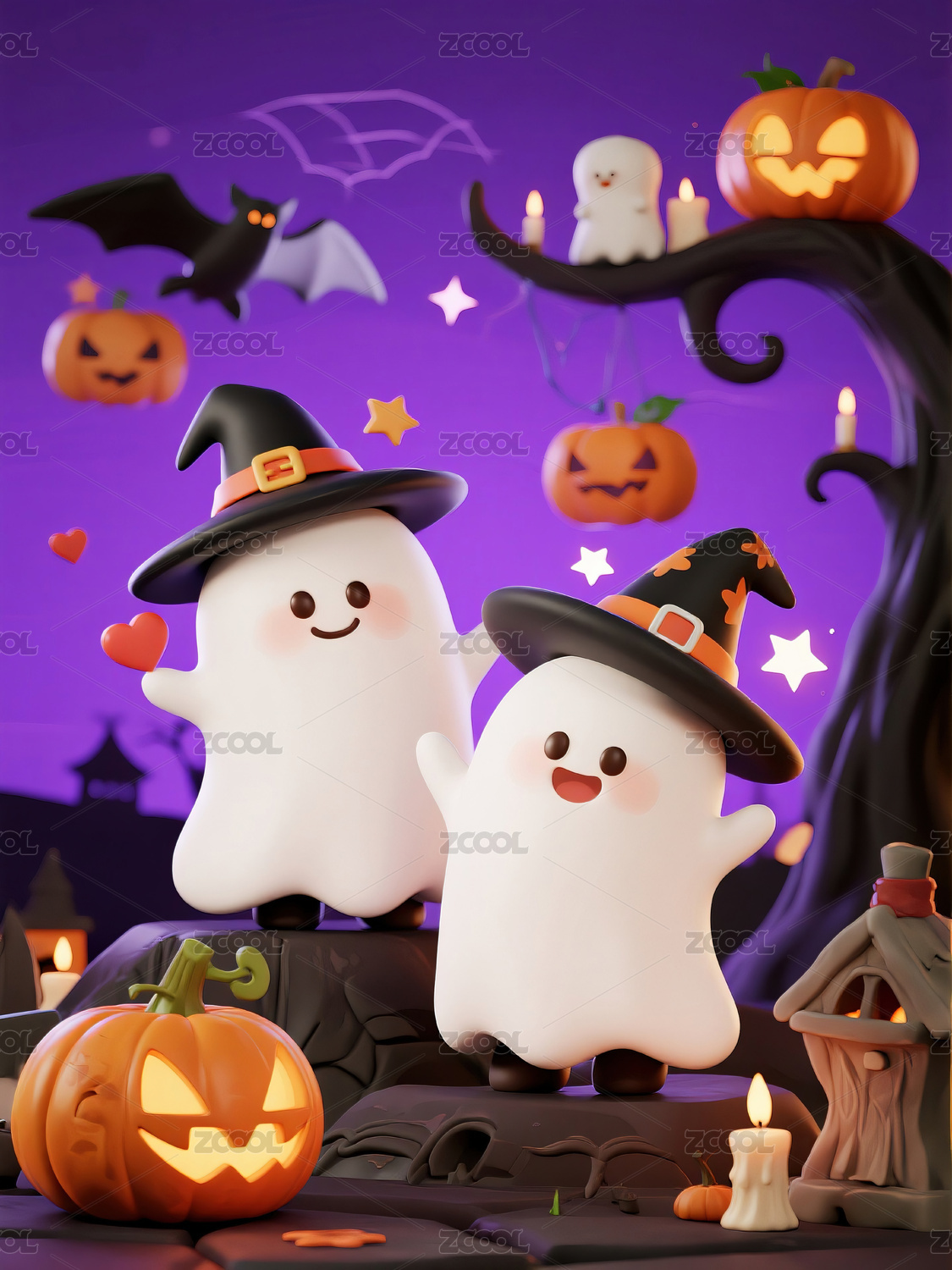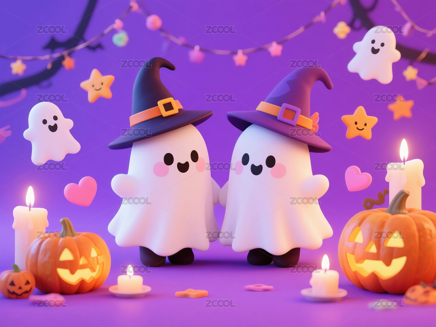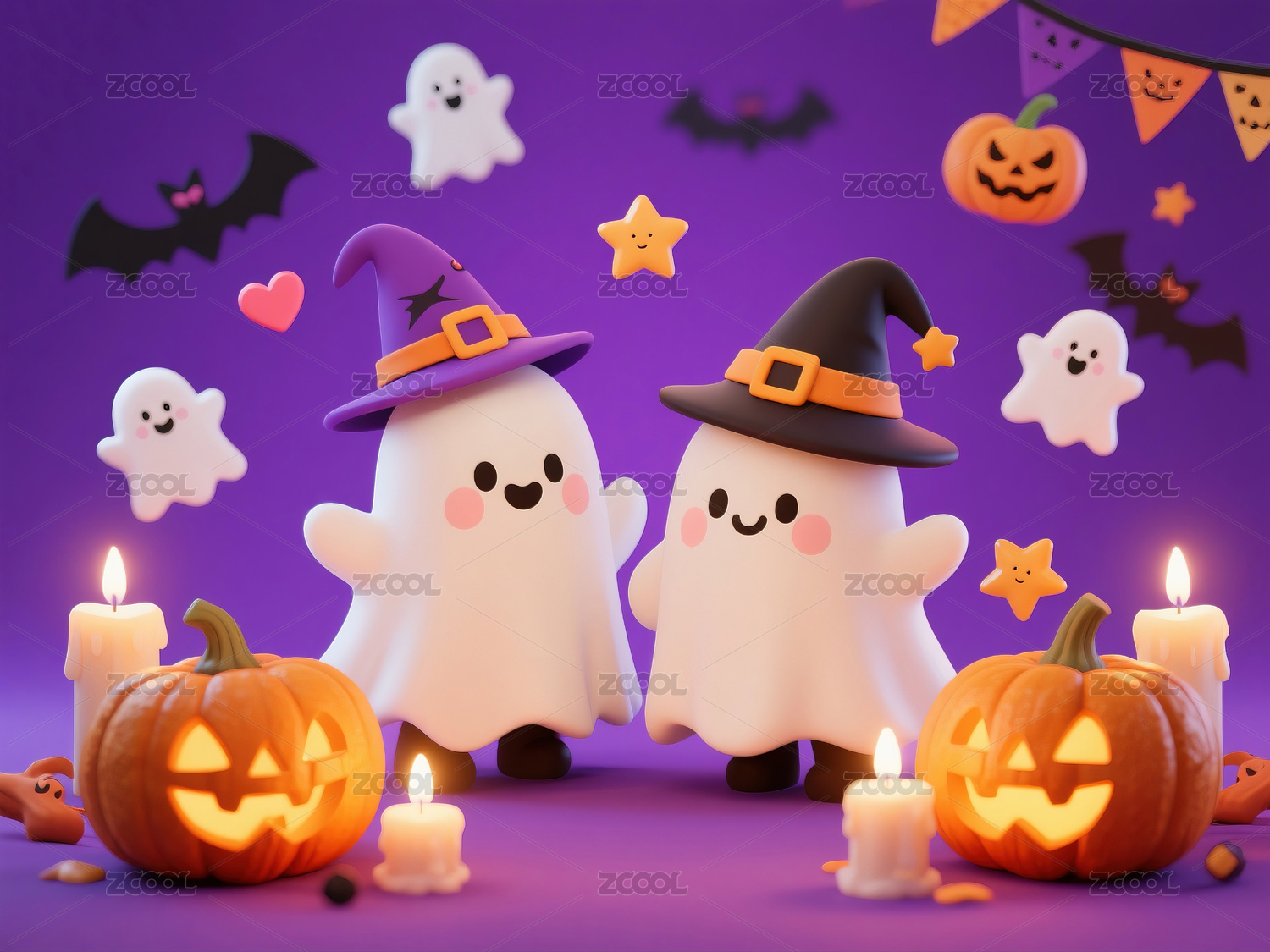 万圣节,幽灵,巫师帽,南瓜,小鬼,阿飘,南瓜灯,背景