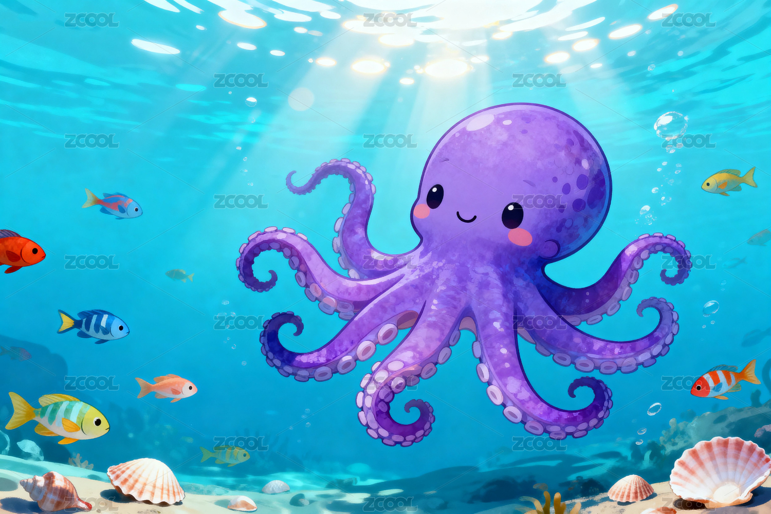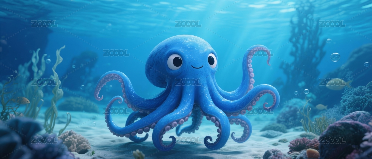 卡通章鱼海洋场景