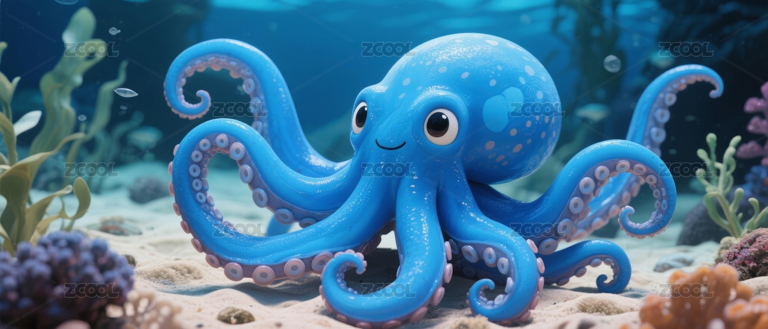 章鱼可爱唯美野生动物3D卡通插画壁纸