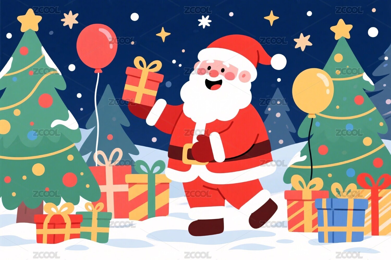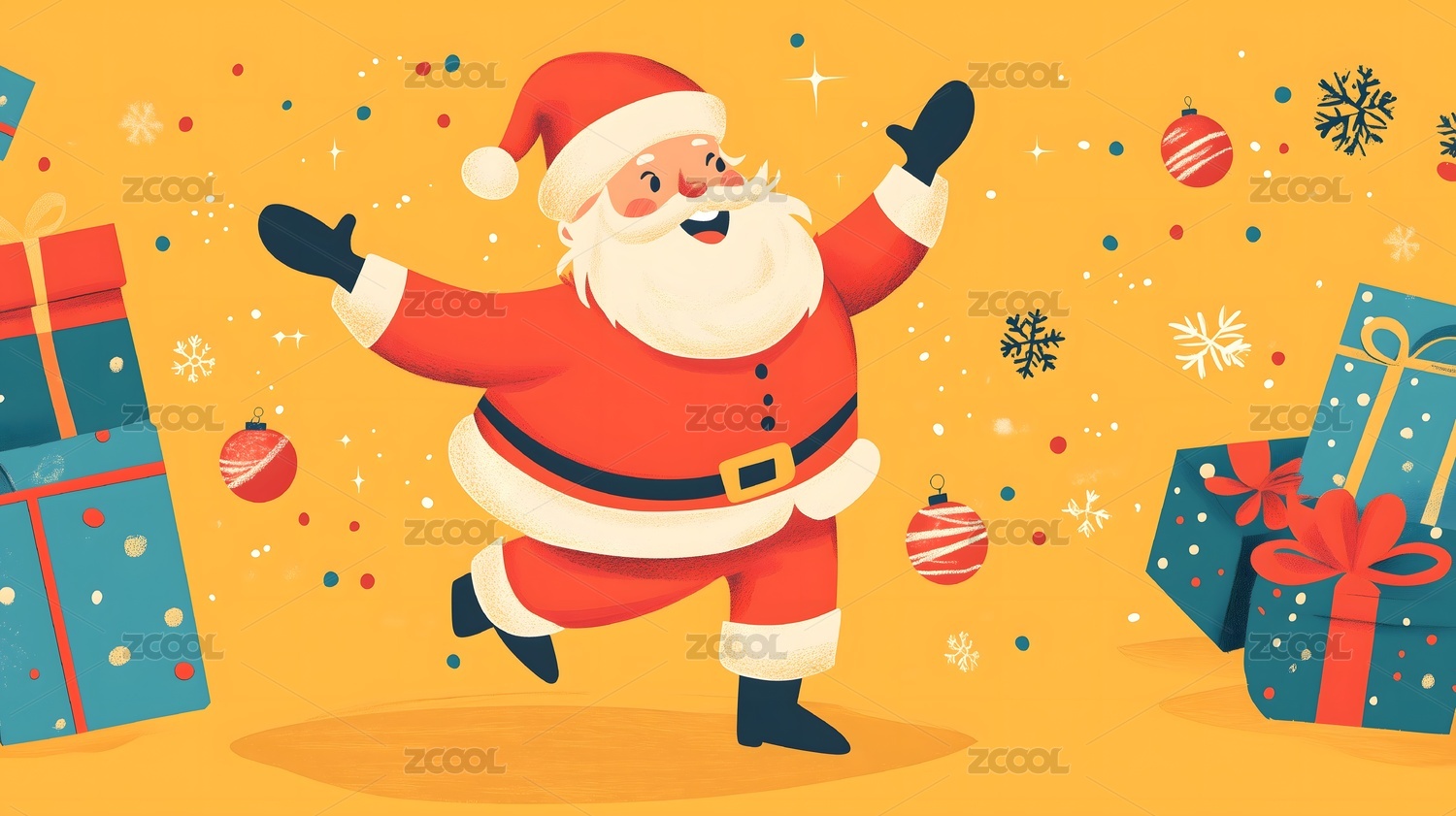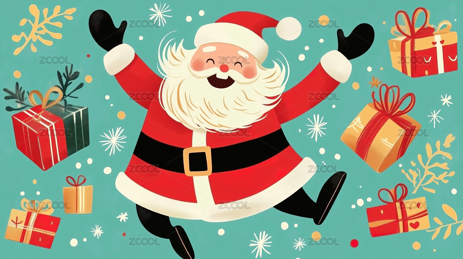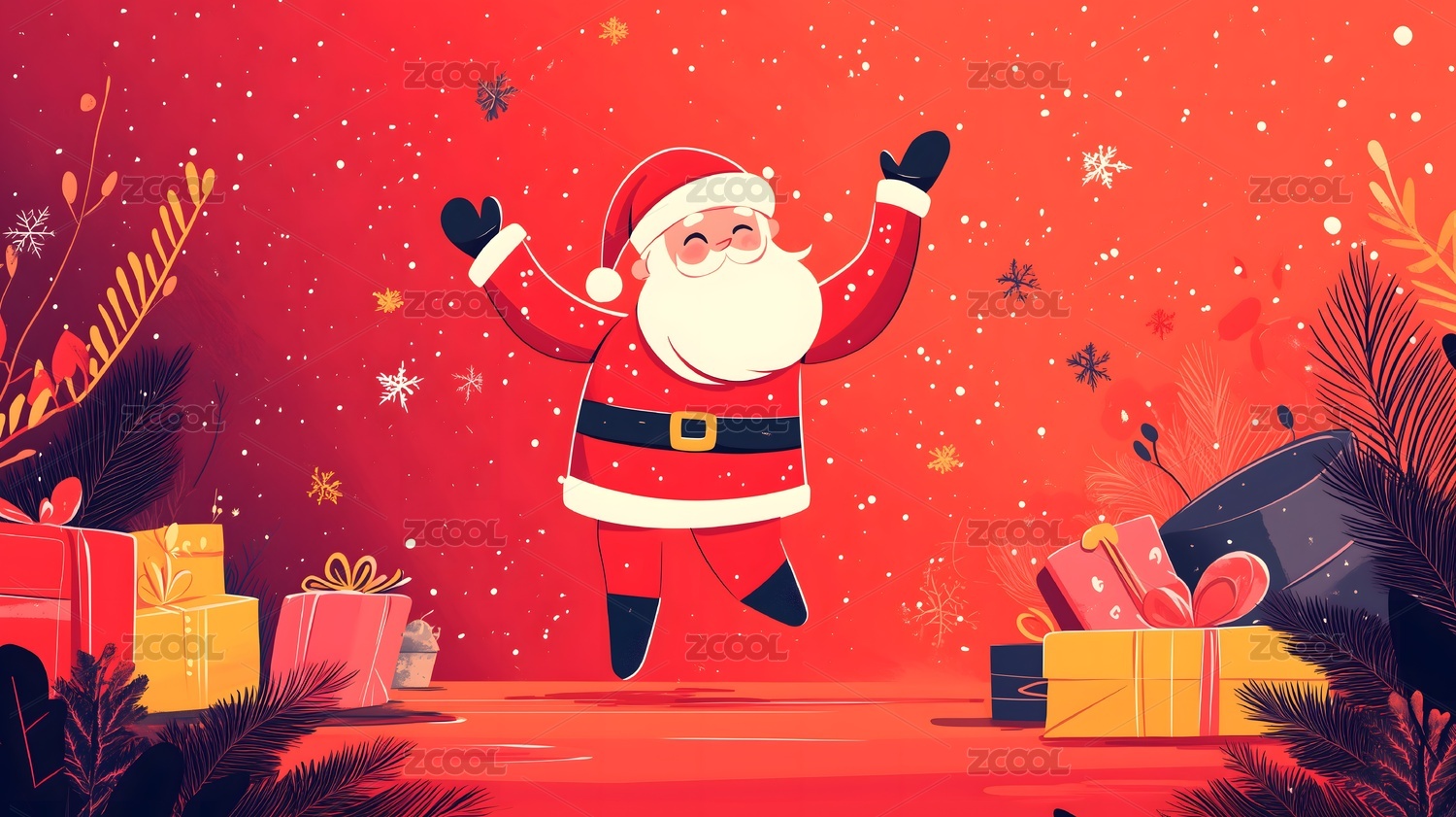开心的奔跑着送礼物的圣诞老人,扁平插画