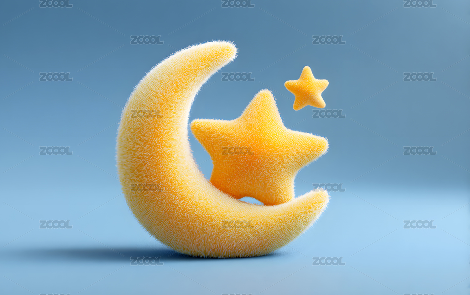 弯弯的月亮和发光的星星C4D