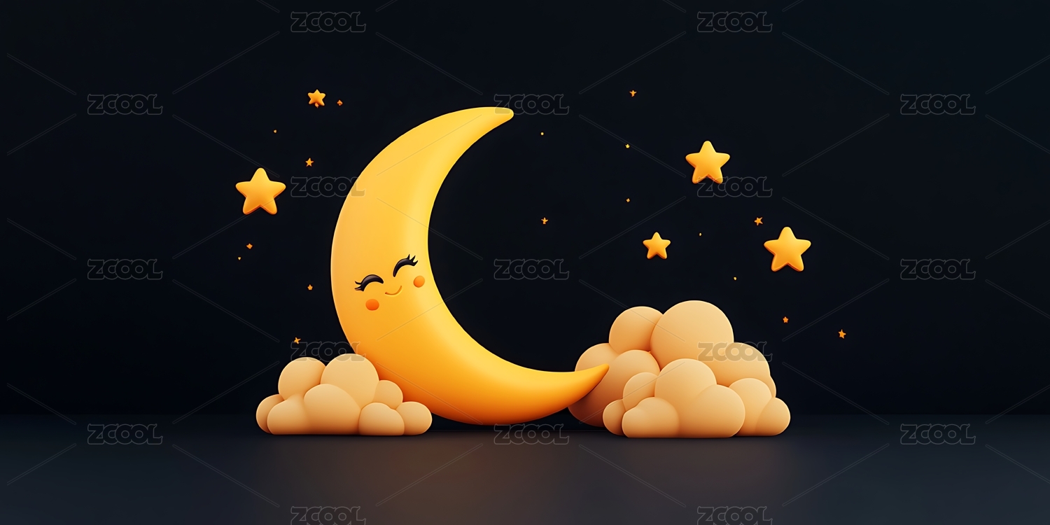 世界睡眠日的月亮和星星三维渲染