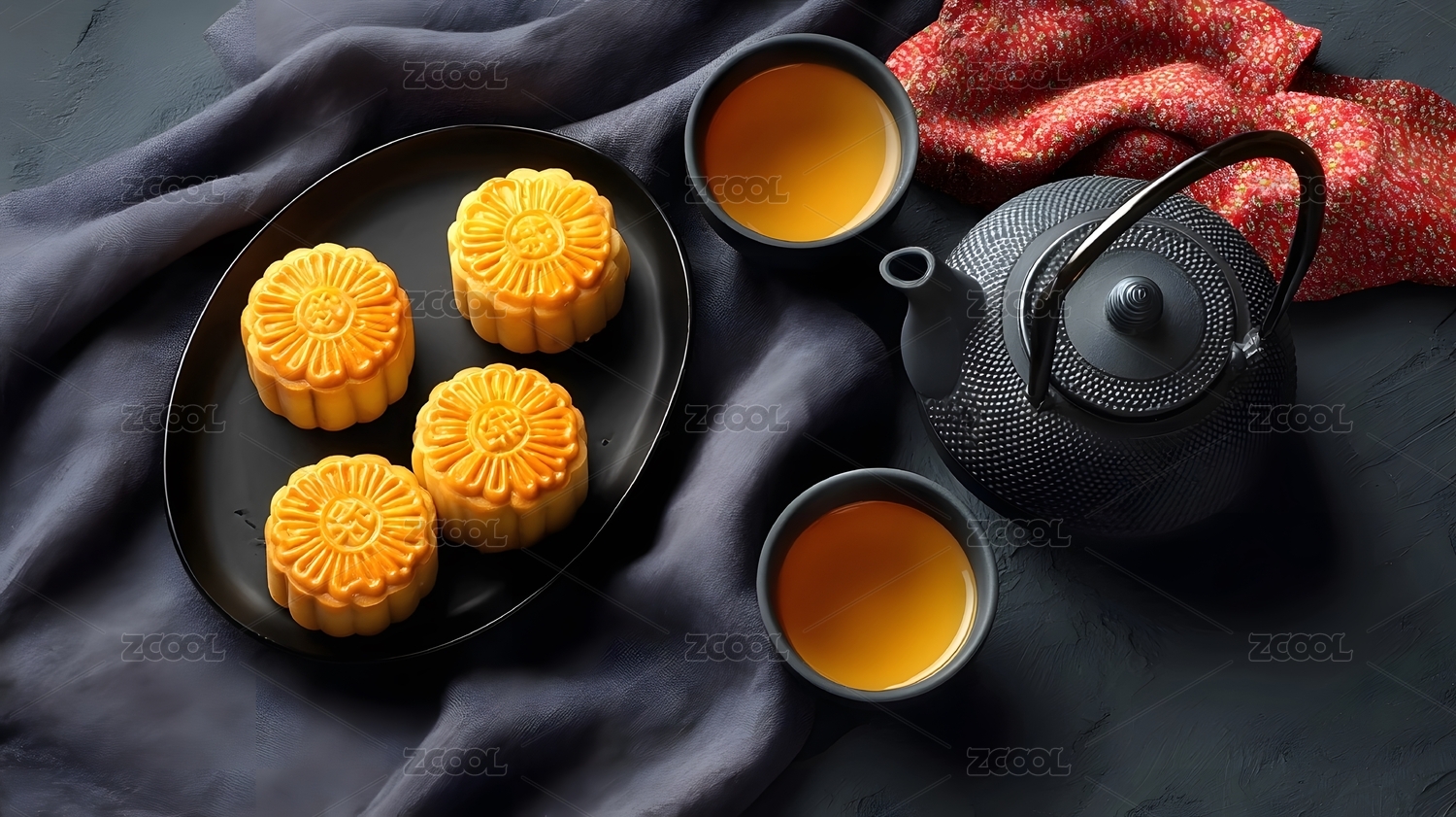 中国传统节日中秋节美食——月饼、茶