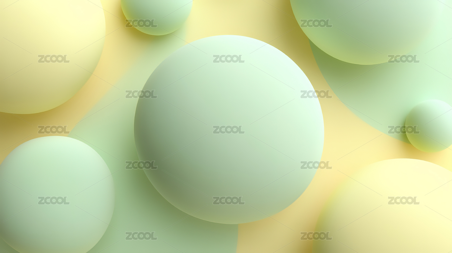 多彩球体悬浮于浅绿背景