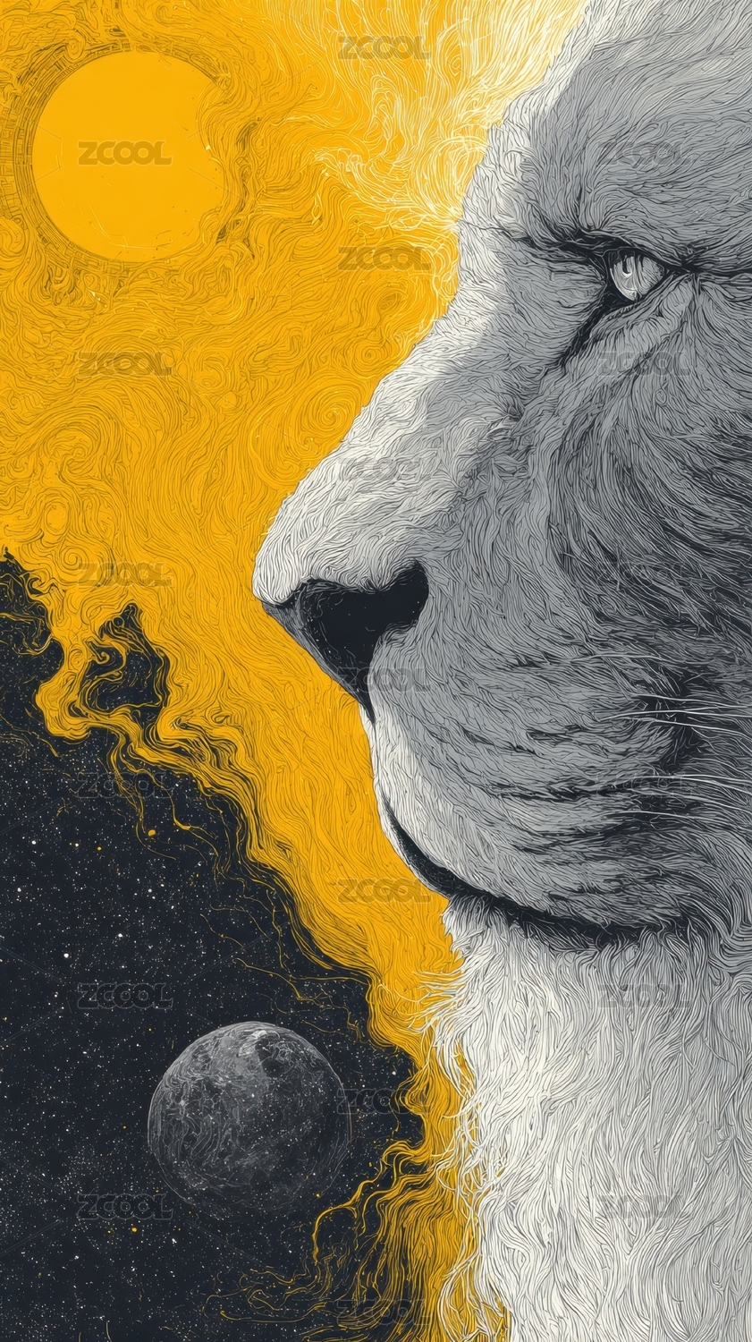 白狮侧脸与星球背景