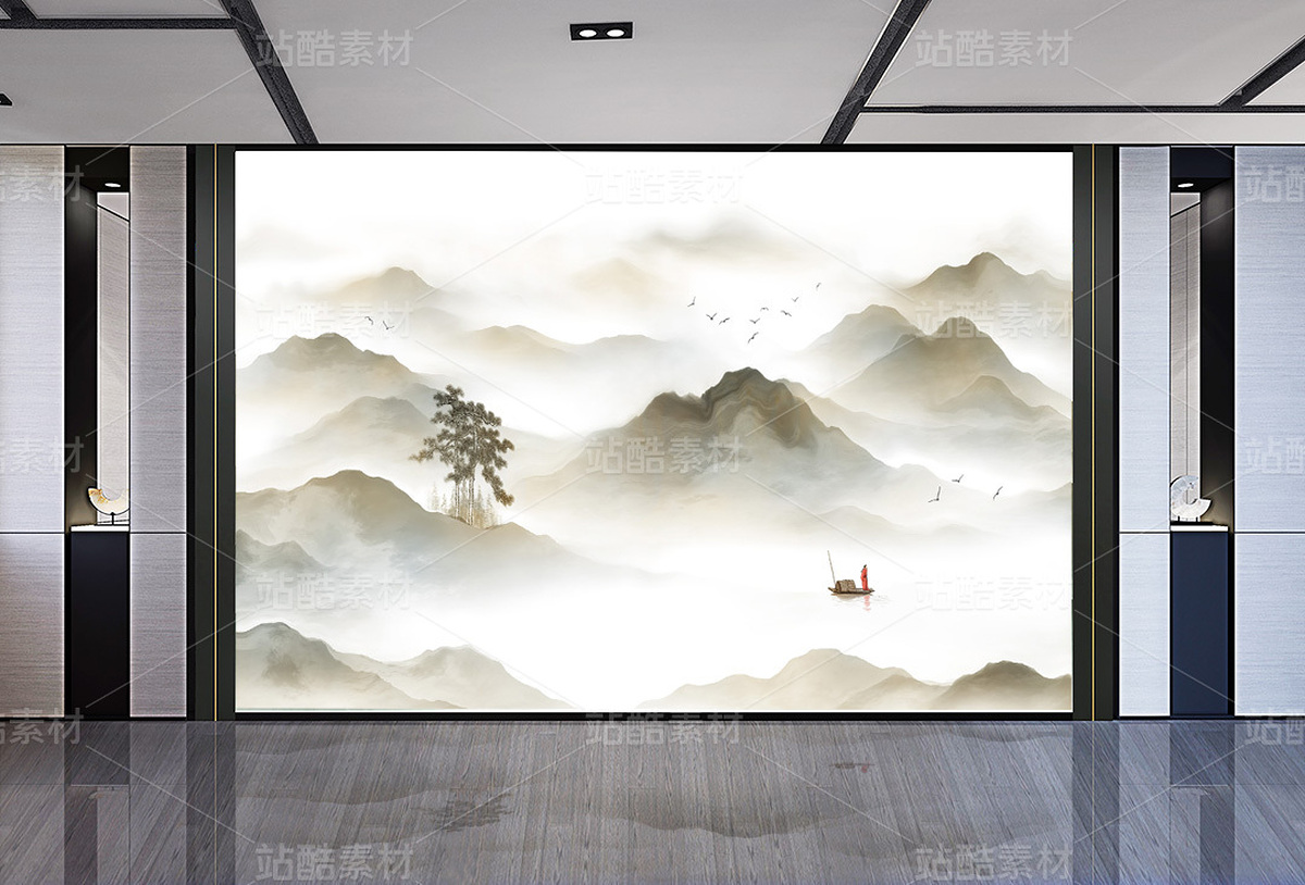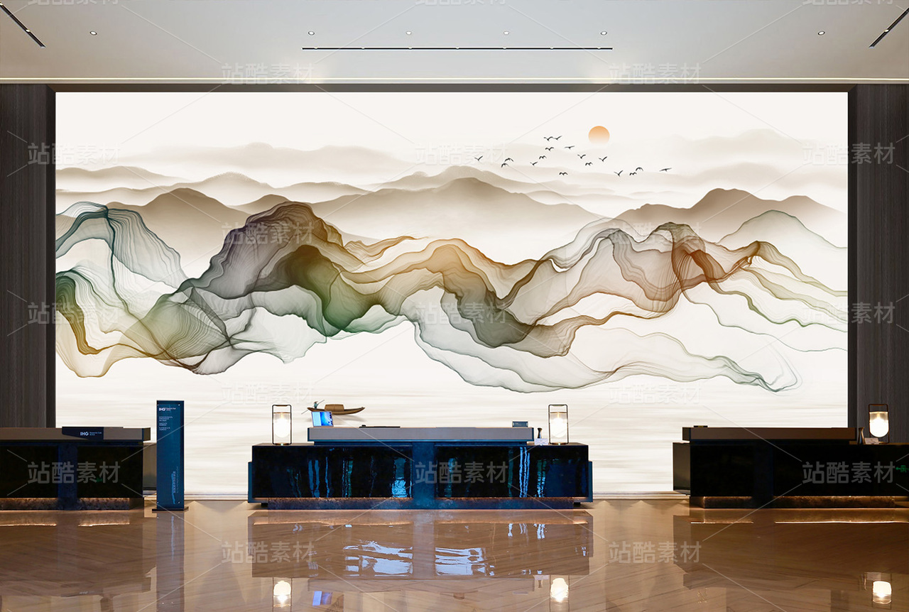 抽象山水装饰画 新中式山水画 意境山水 适用于家装,酒店,文化场所等,用于做:背景墙、隔断、移门,屏风、玄关。高清分层图可以用UV打印。