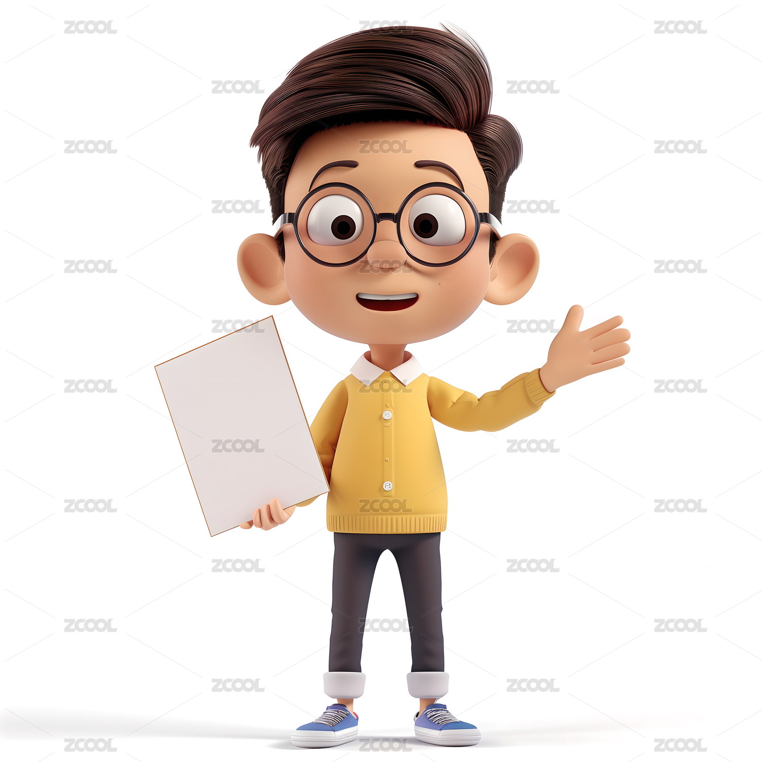 西装男职员在白板前汇报演讲的3d卡通站姿