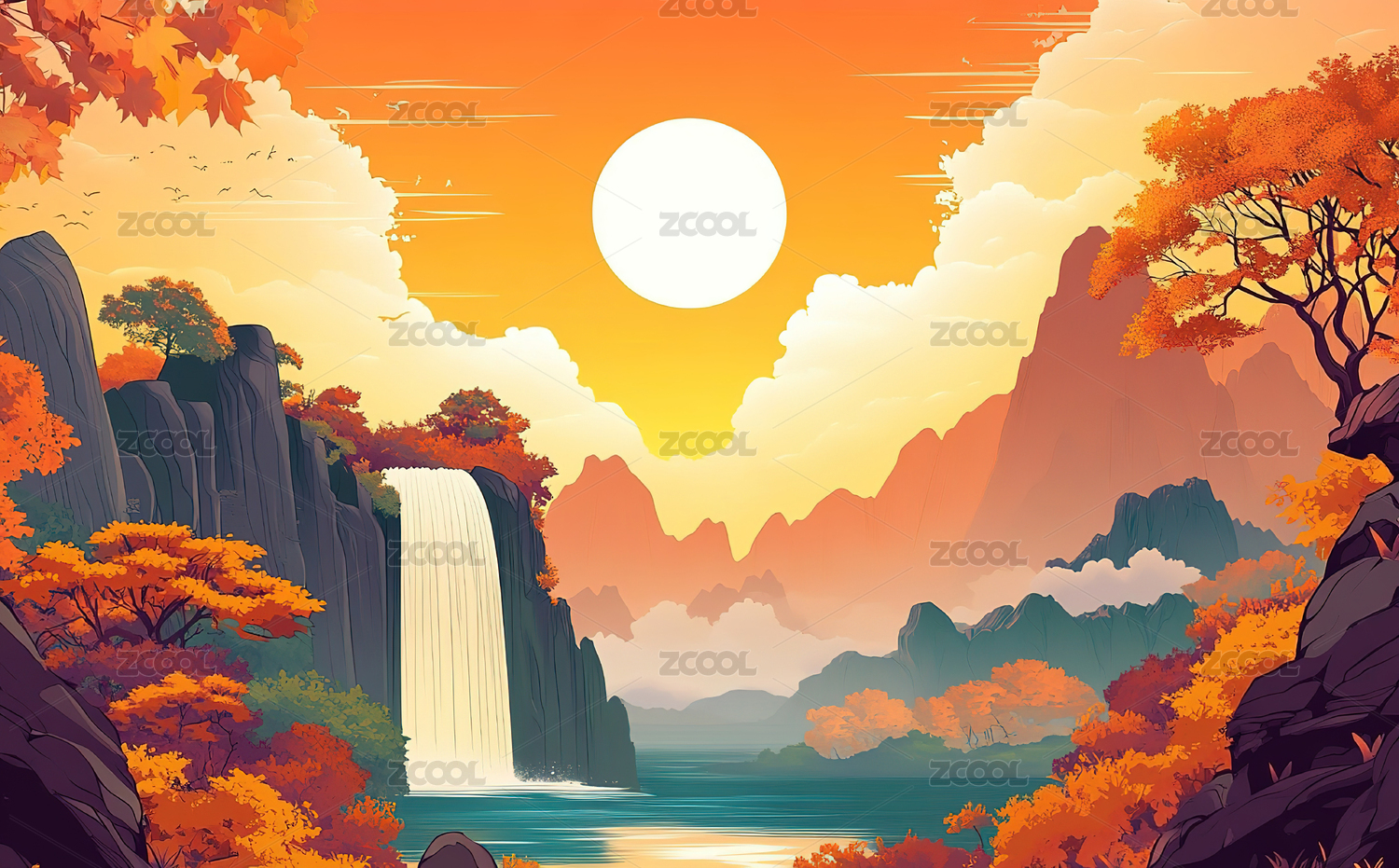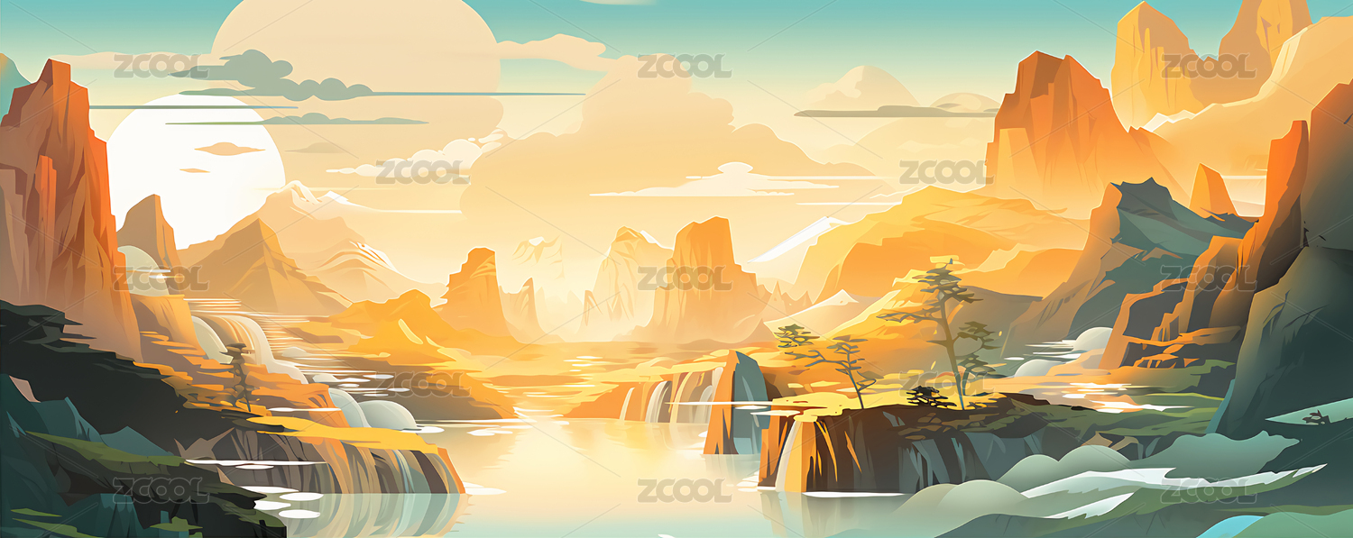唯美国风自然风景插画