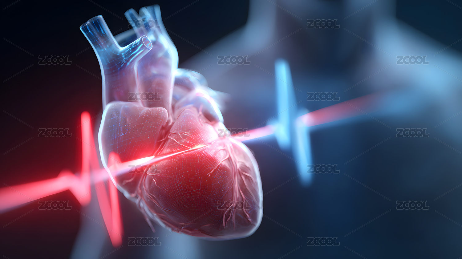 蓝色光影中的人类心脏模型