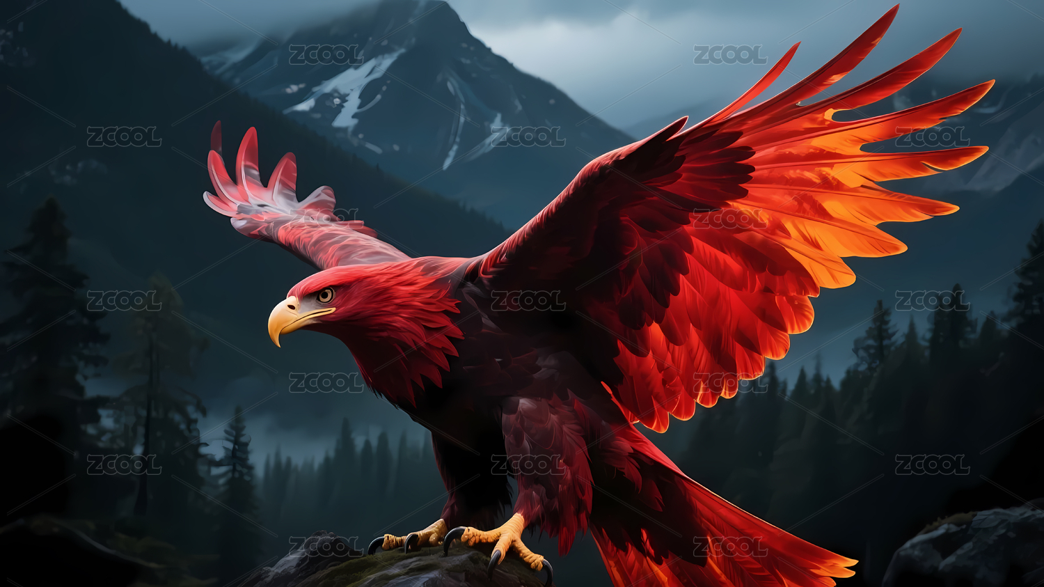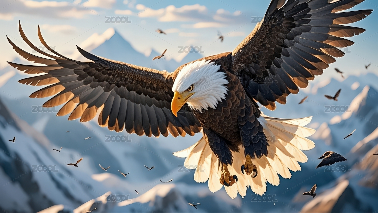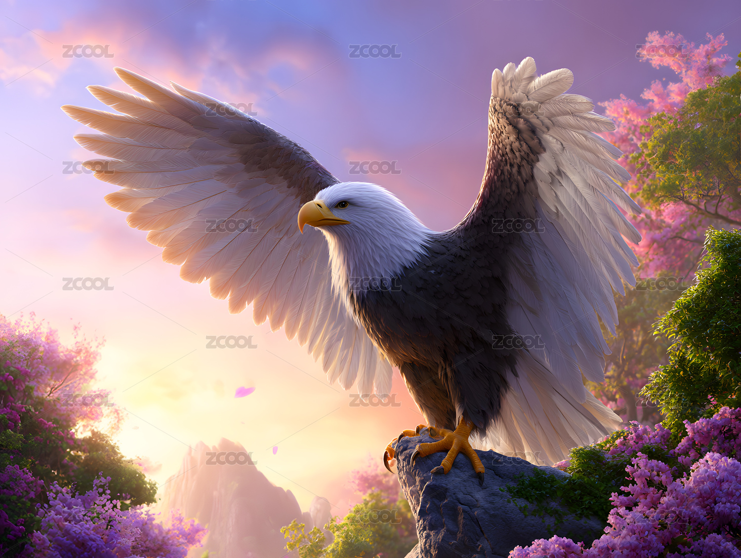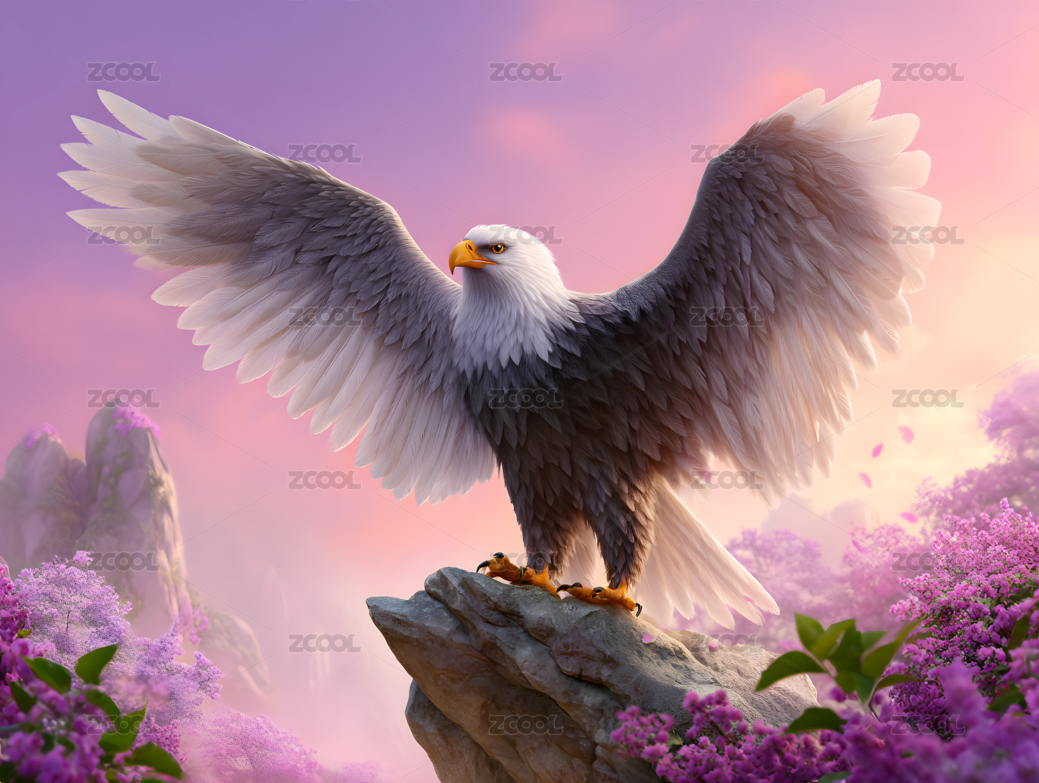 天空中飞翔的白头鹰,日本浮世绘艺术插画