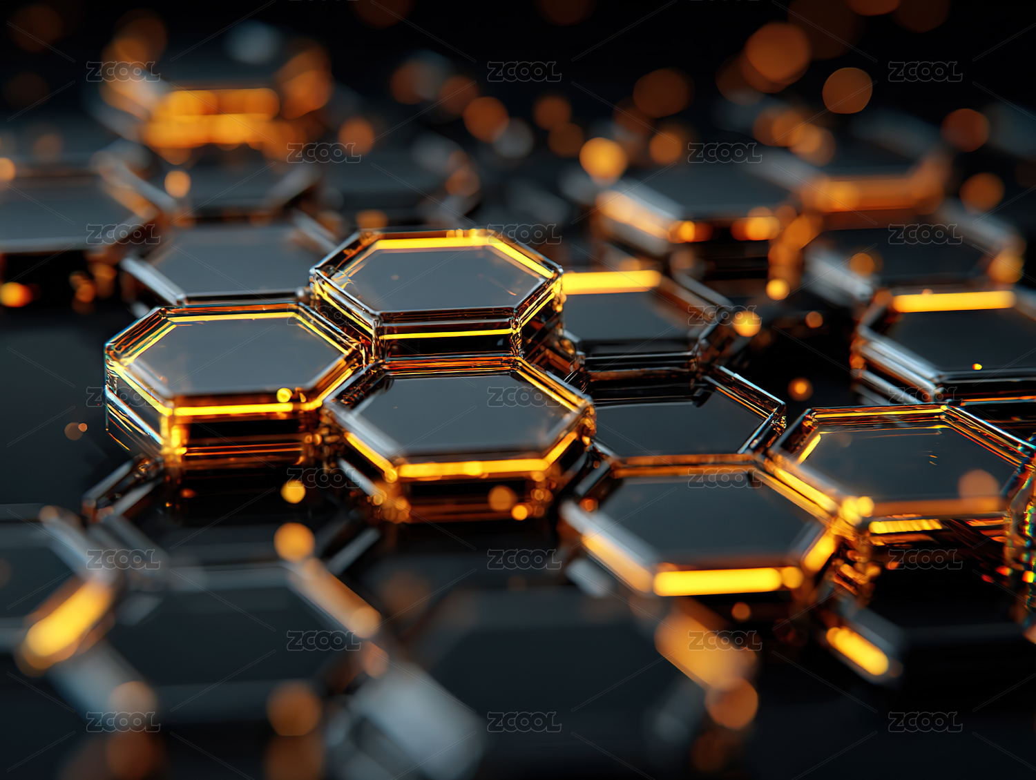 金色六边形结构特写