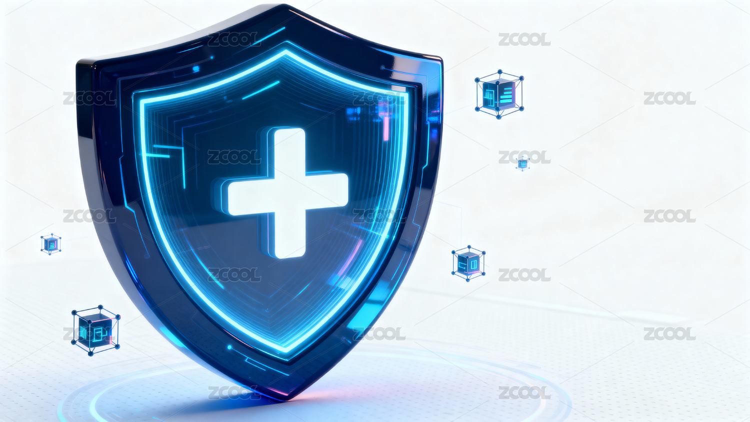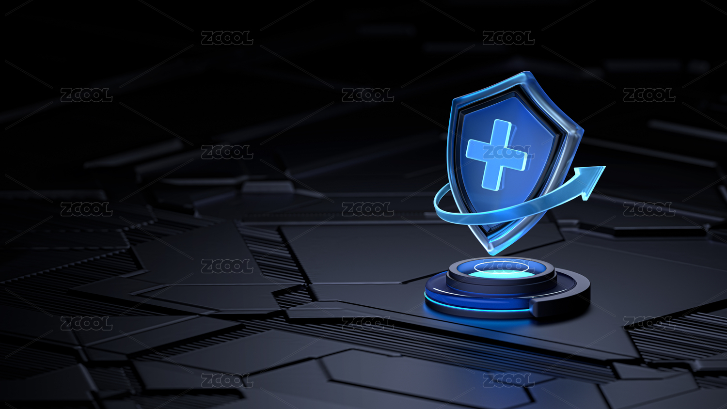 蓝色商务科技3D渲染盾牌图标主视觉背景