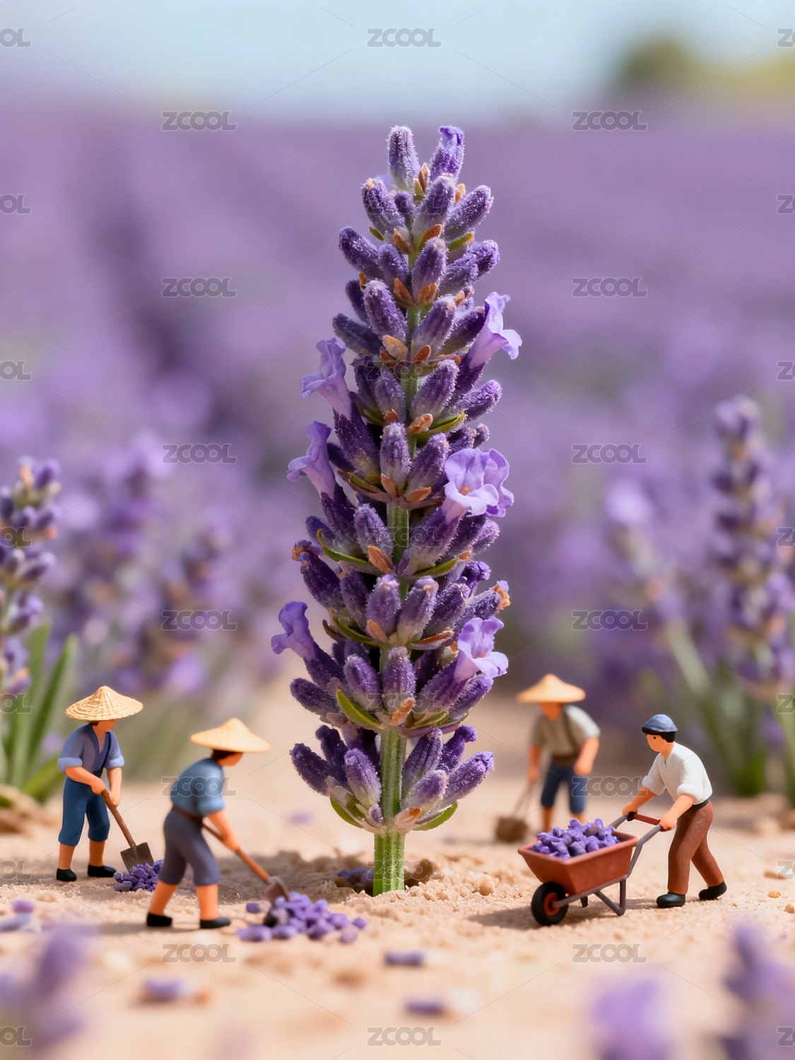 薰衣草与小型人物互动