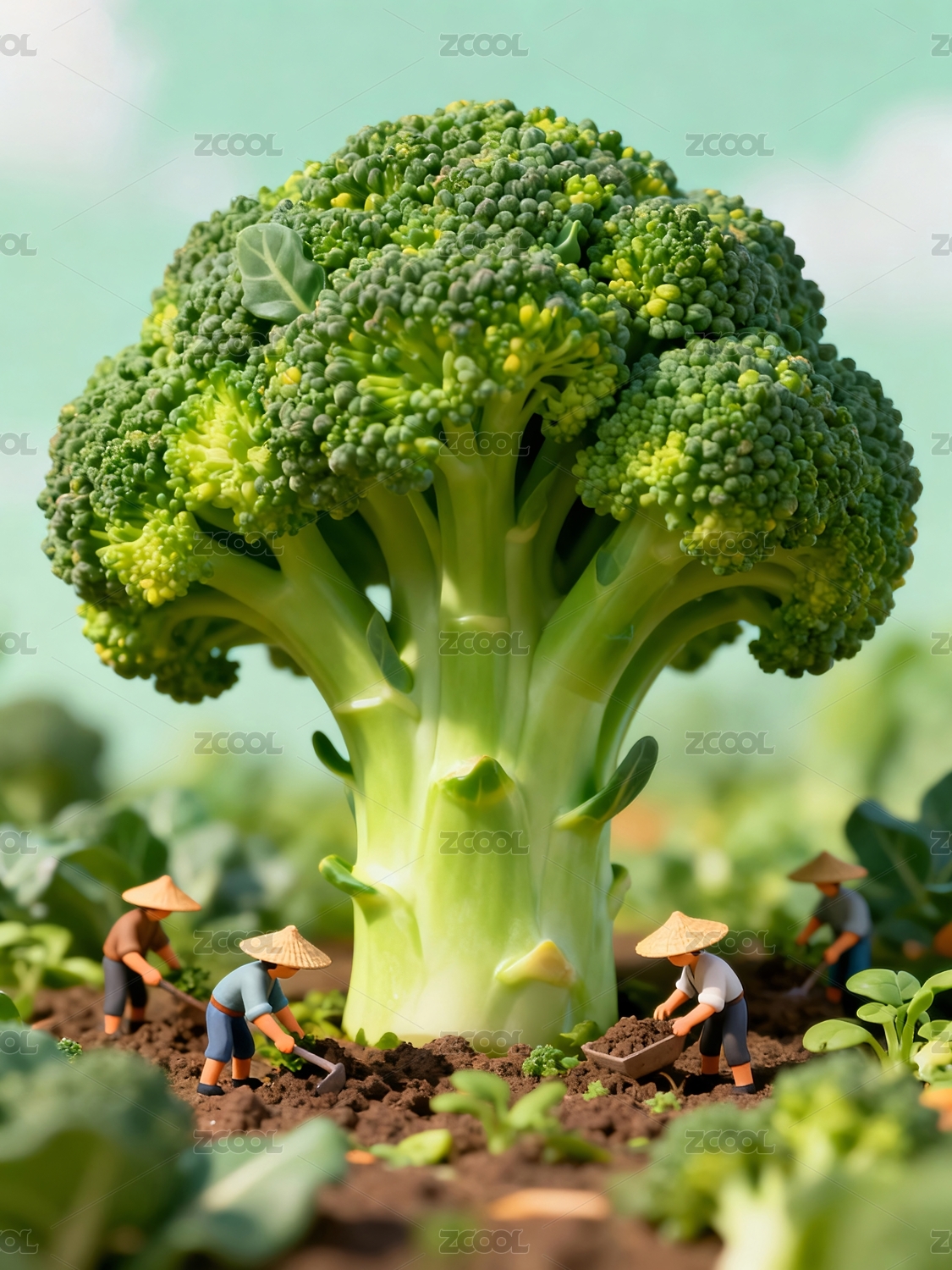 微缩摄影世界正在采摘西蓝花青花菜的农夫